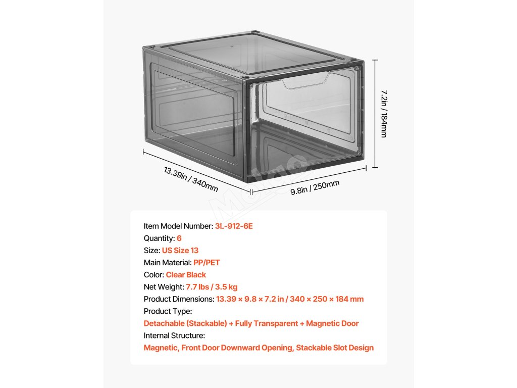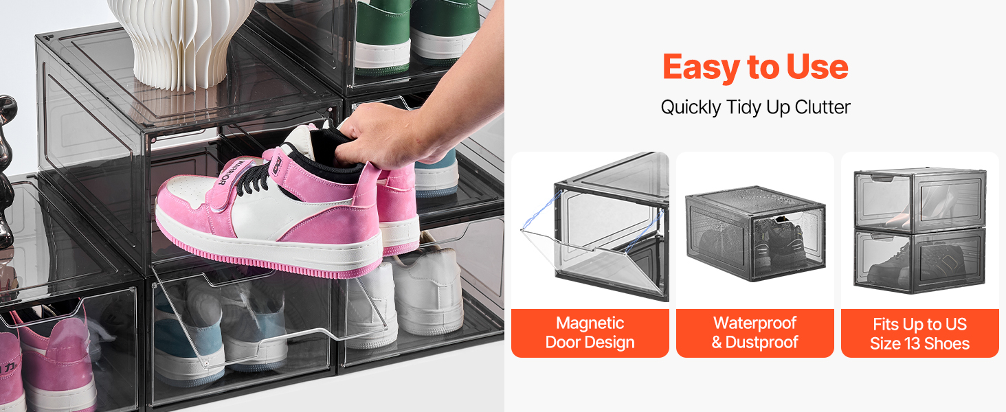 Do týchto priestranných boxov na organizovanie obuvi sa zmestí obuv až do veľkosti US 13. Vďaka magnetickému dizajnu dvierok sú vaše topánky chránené pred prachom a vodou, čo poskytuje maximálnu starostlivosť o vašu obuv.