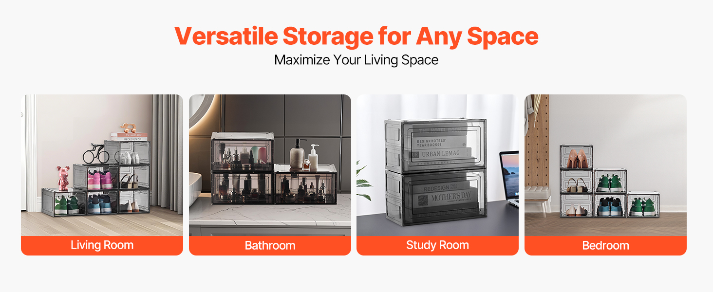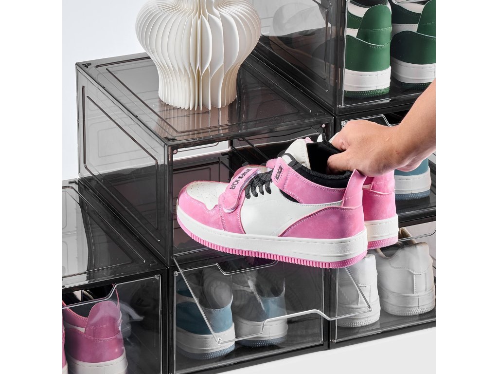 Tieto stohovateľné boxy na topánky, ktoré sú ideálne do rôznych priestorov v domácnosti, dokážu uskladniť nielen topánky, ale aj roztrúsené predmety v domácnosti, čím uvoľnia cenný úložný priestor.