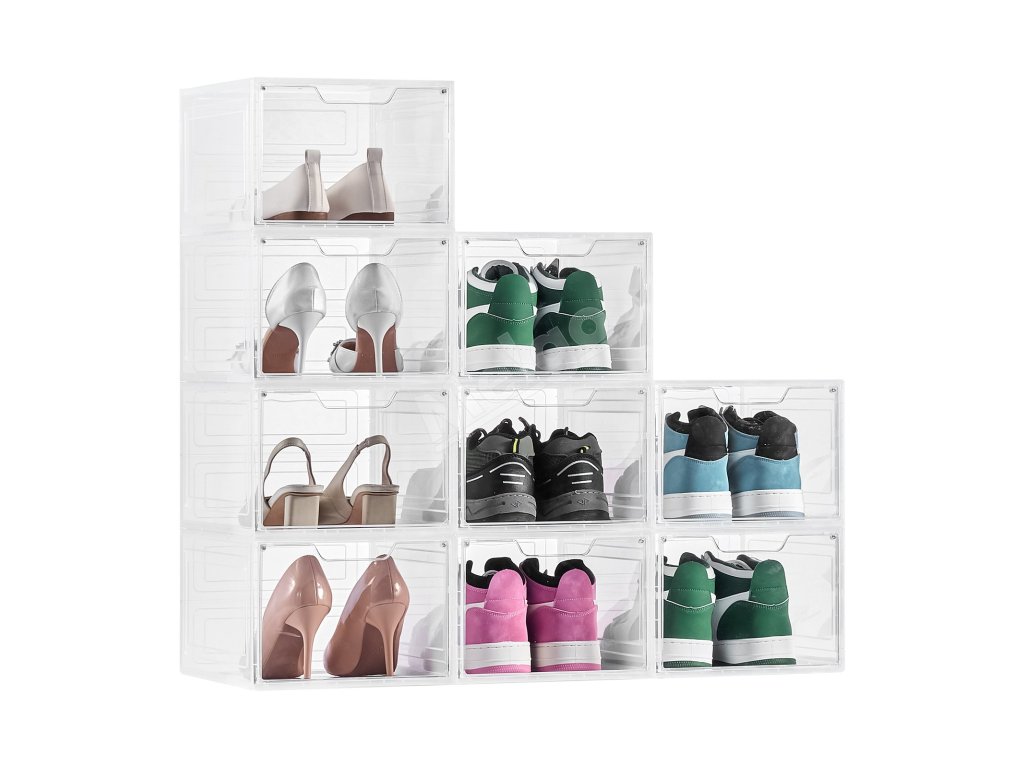 Tieto stohovateľné boxy na topánky, ktoré sú ideálne do rôznych priestorov v domácnosti, dokážu uskladniť nielen topánky, ale aj roztrúsené predmety v domácnosti, čím uvoľnia cenný úložný priestor.