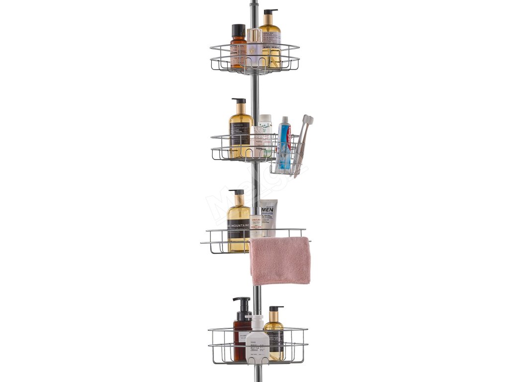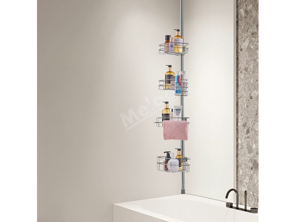 Napínacia sprchová tyč s poličkami, 56"–114" výška, nerezová