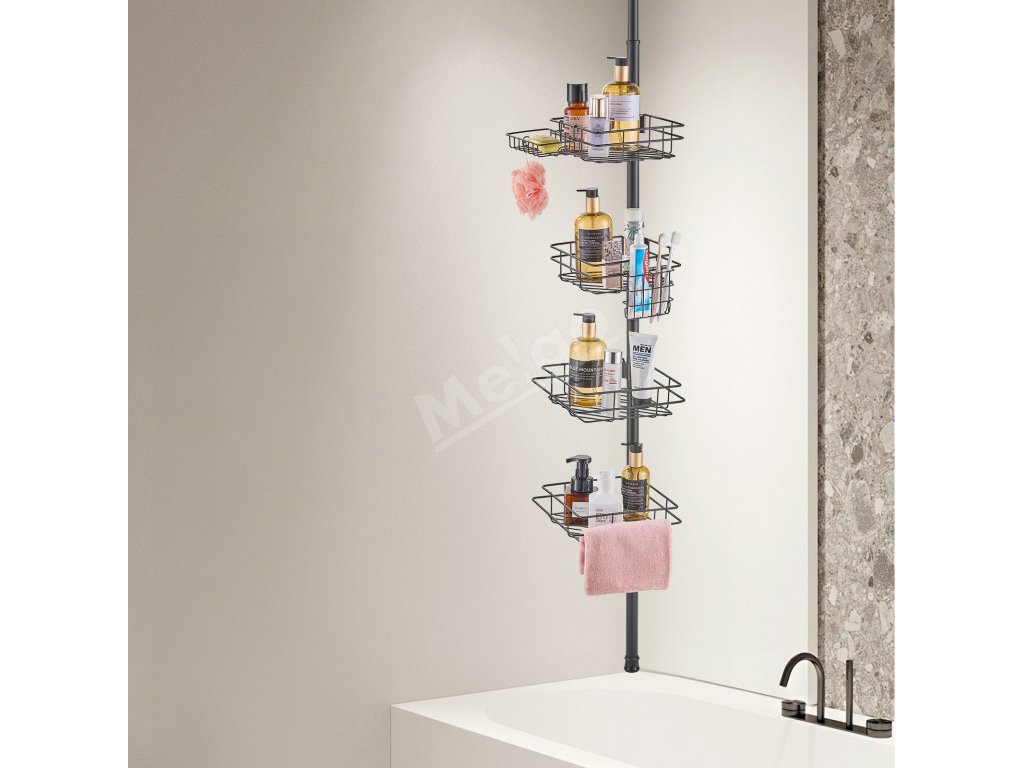 Sprchový rohový organizér na tyč 42"–114", proti hrdzi, nosná polica