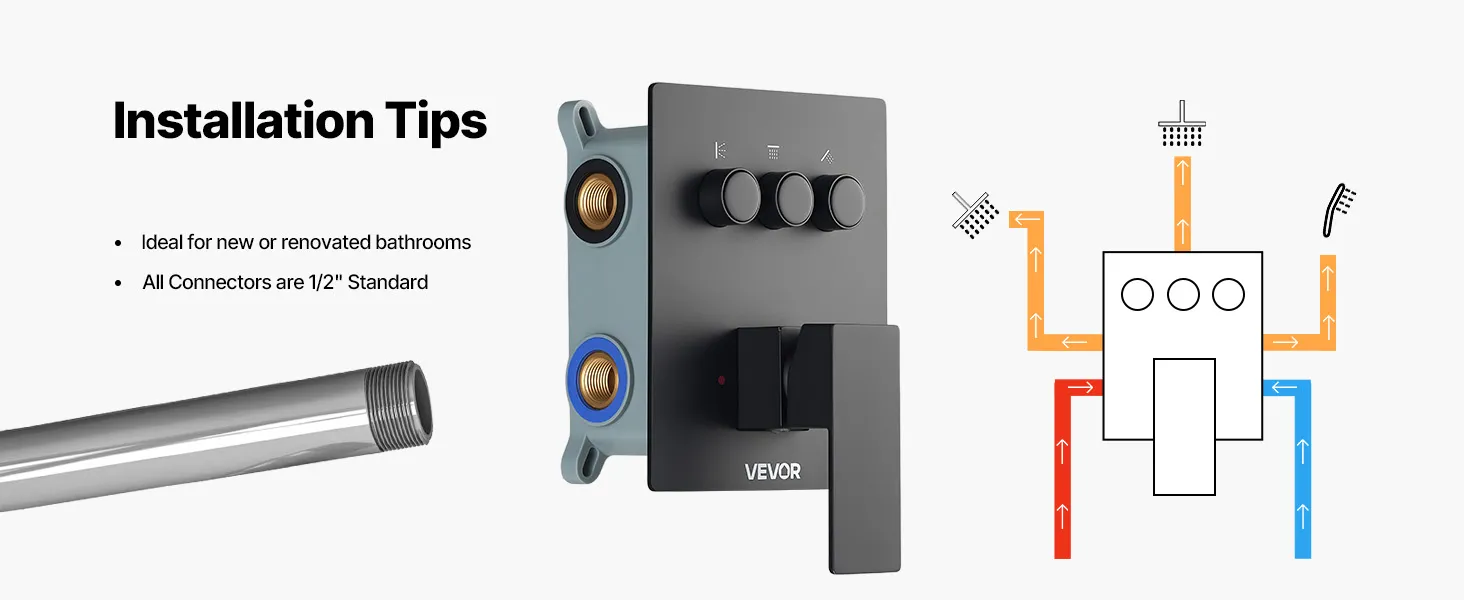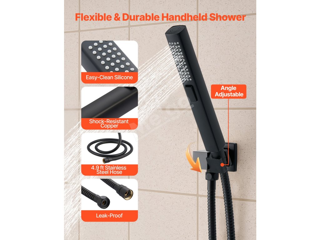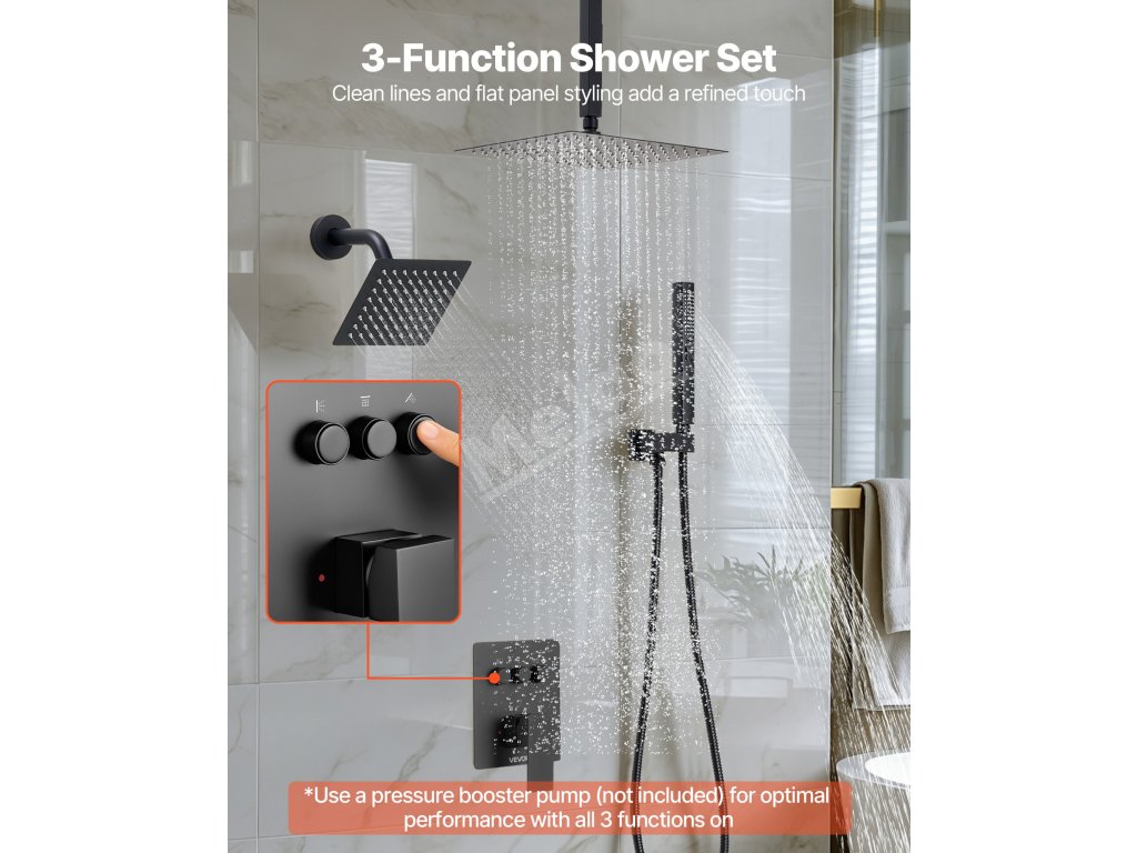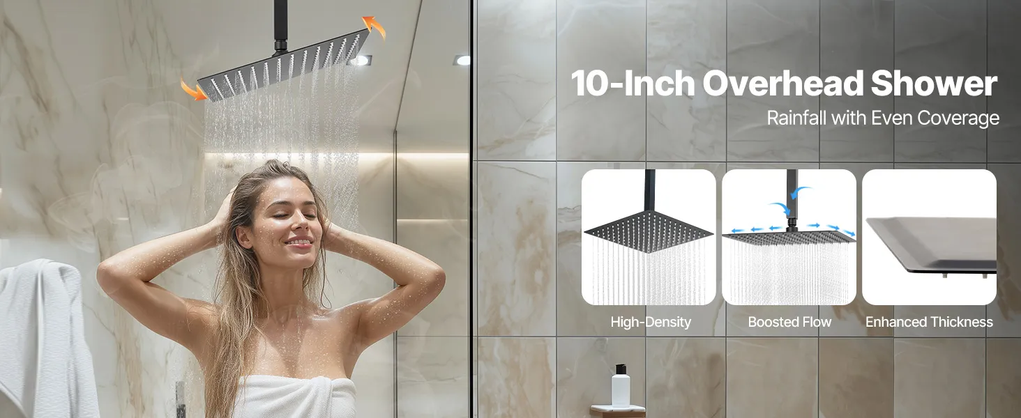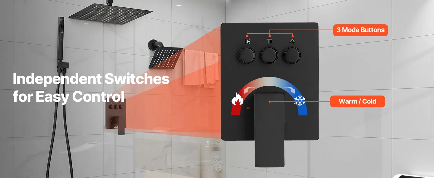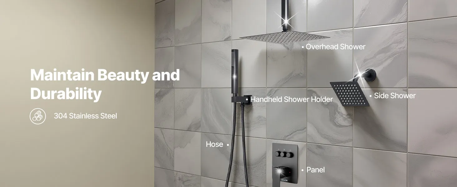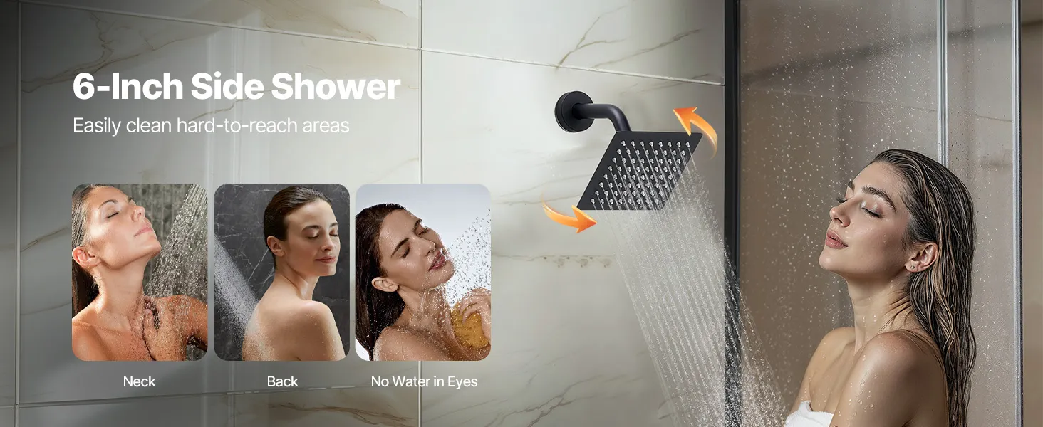 Naša súprava sprchových batérií ukrýva vodovodné potrubie za stenou, čím vytvára elegantný, špičkový vzhľad kúpeľne. Obsahuje 3 osviežujúce funkcie sprchy - ručnú, bočnú a hlavovú - na vylepšenie zážitku pre celé telo.