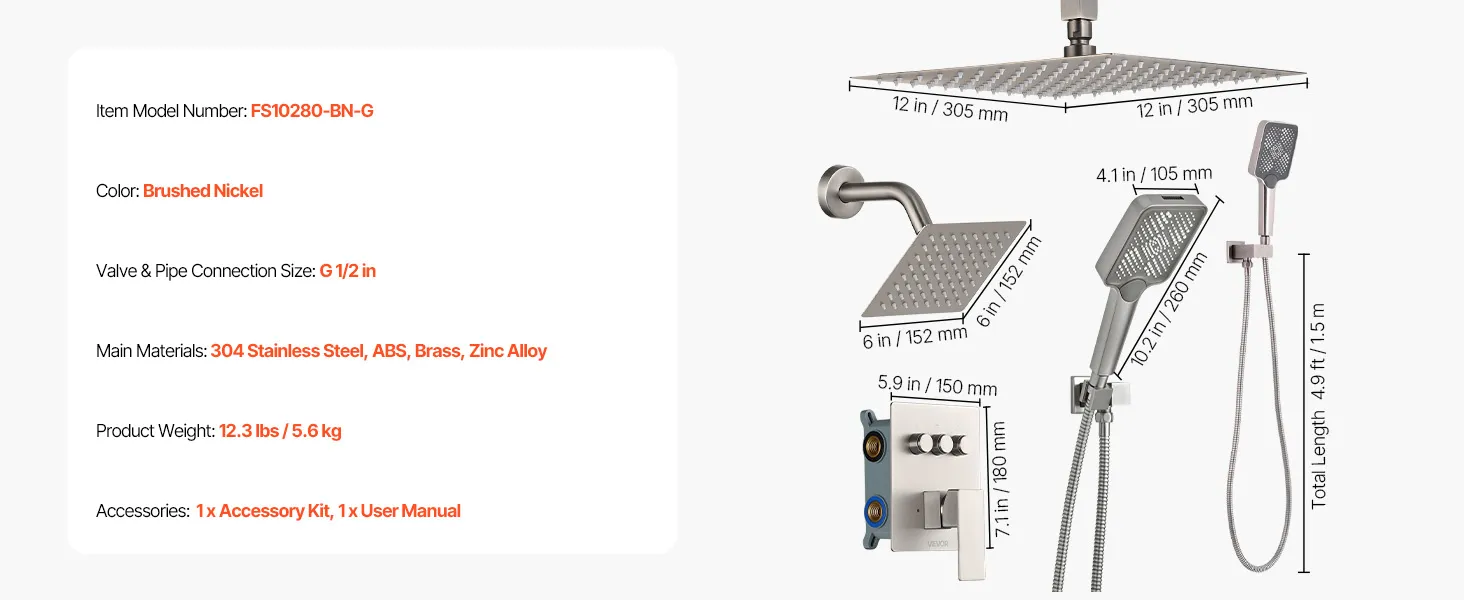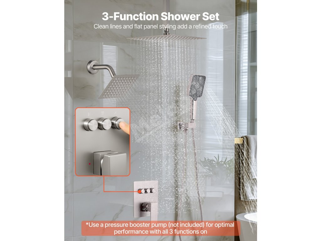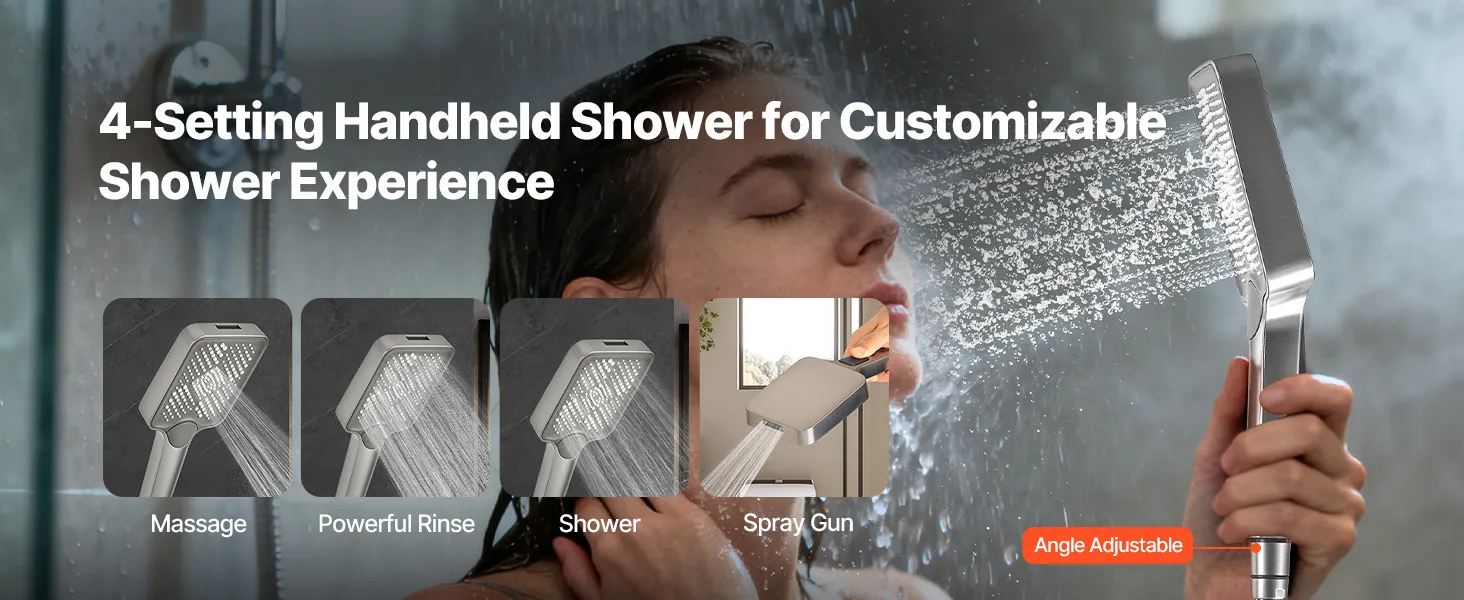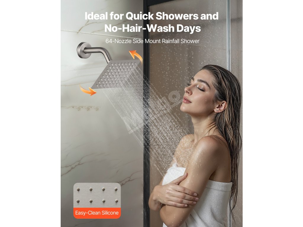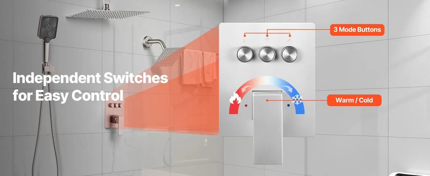 Naša súprava sprchových batérií ukrýva vodovodné potrubie za stenou, čím vytvára elegantný, špičkový vzhľad kúpeľne. Obsahuje 3 osviežujúce funkcie sprchy - ručnú, bočnú a hlavovú - na vylepšenie zážitku pre celé telo.