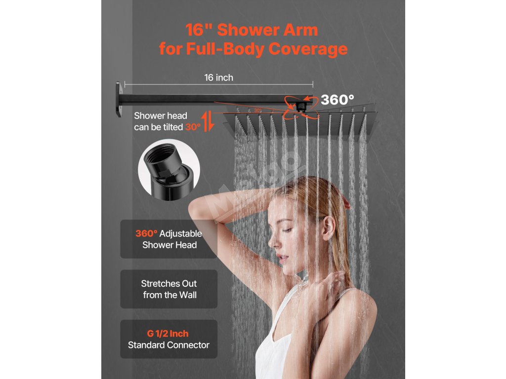 | Dĺžka sprchového ramena | 16 in/406 mm |