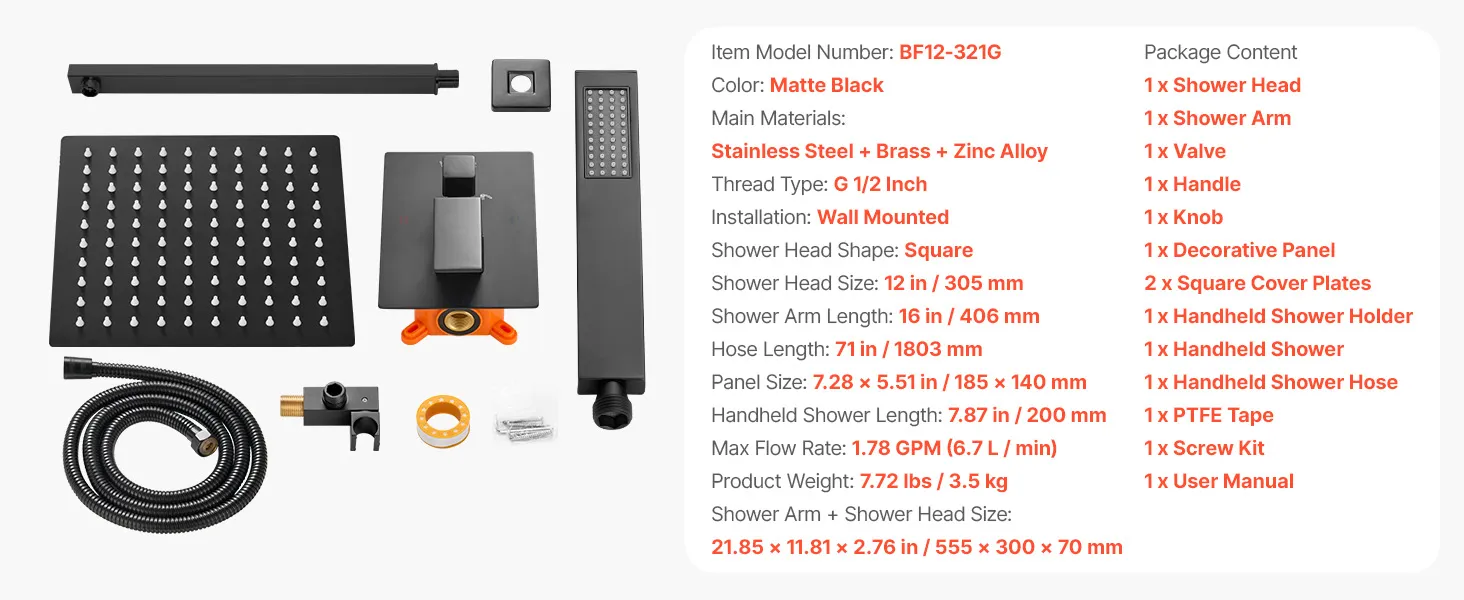 | Veľkosť sprchovej hlavice | 12 palcov/305 mm |