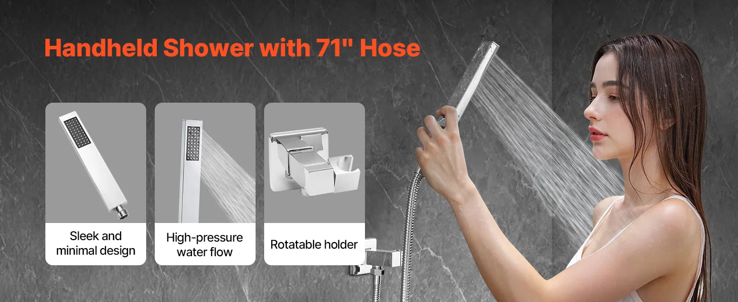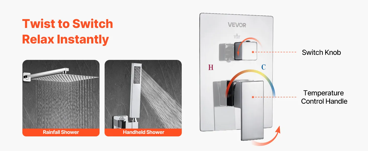 Naša súprava sprchového systému s dvoma funkciami ponúka možnosť dažďovej aj ručnej sprchy a poskytuje vysokotlakový prúd vody aj pri nízkom stave vody, čím poskytuje osviežujúci a relaxačný zážitok zo sprchovania.