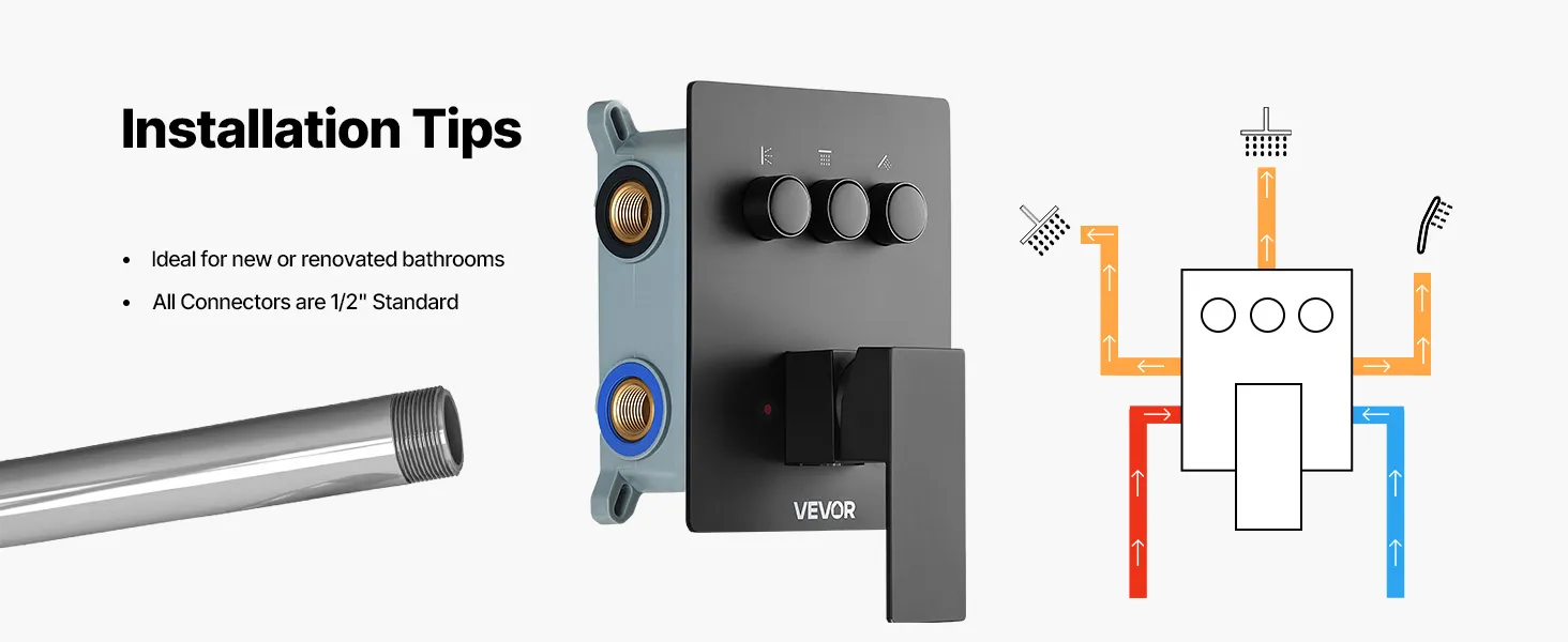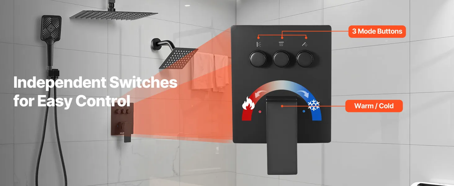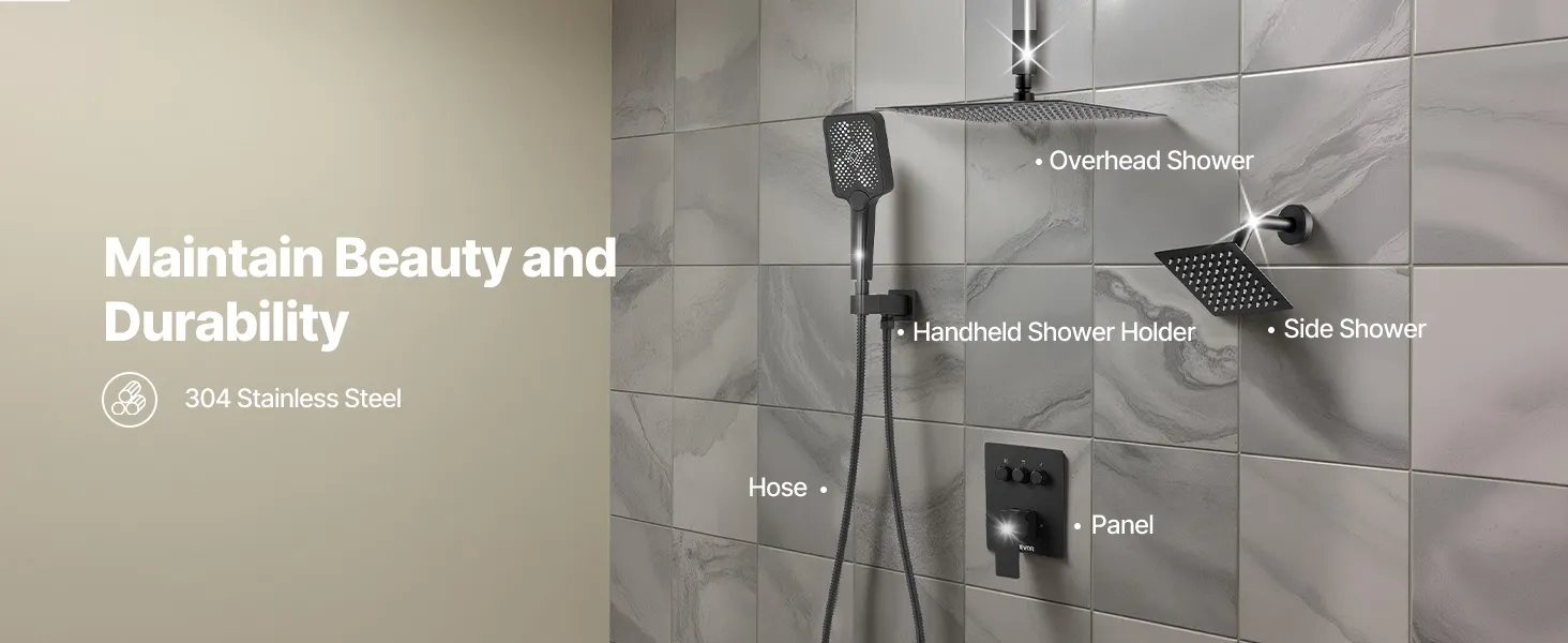 Naša súprava sprchových batérií ukrýva vodovodné potrubie za stenou, čím vytvára elegantný, špičkový vzhľad kúpeľne. Obsahuje 3 osviežujúce funkcie sprchy - ručnú, bočnú a hlavovú - na vylepšenie zážitku pre celé telo.