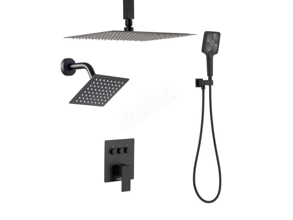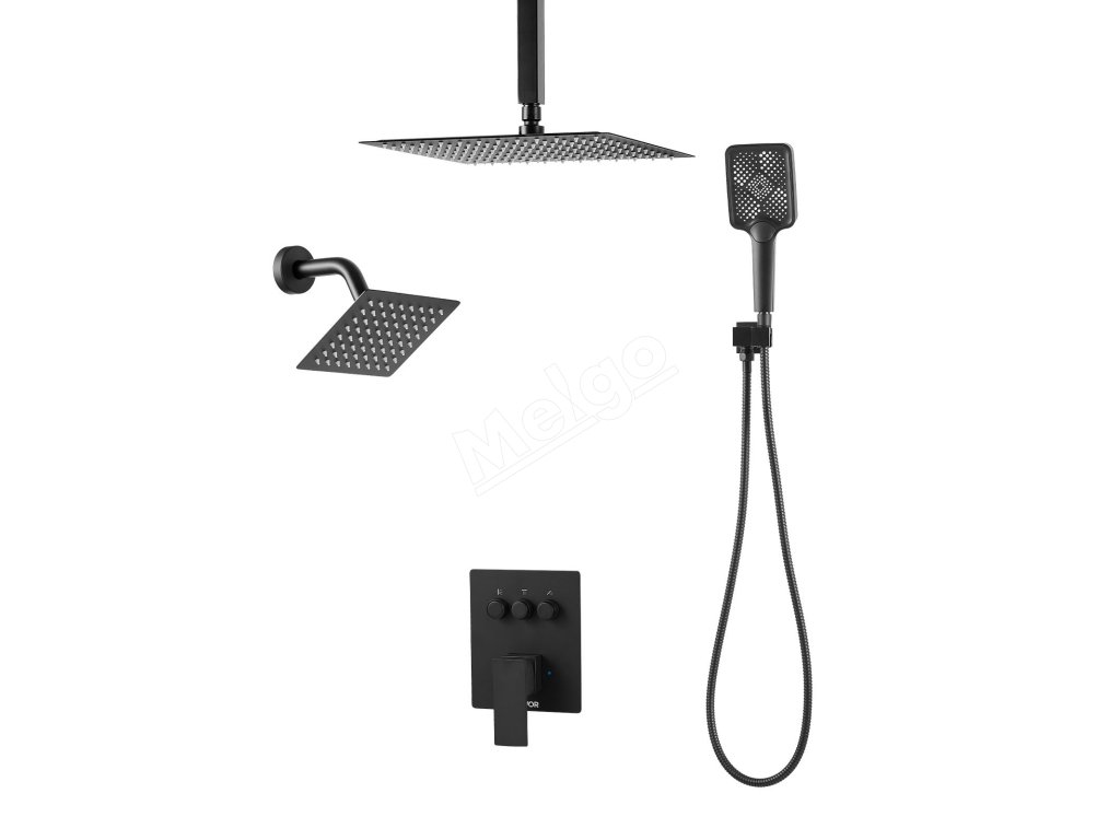 Sprchový set stropný 305 mm, nástenná 152 mm, ručná 4v1, čierna