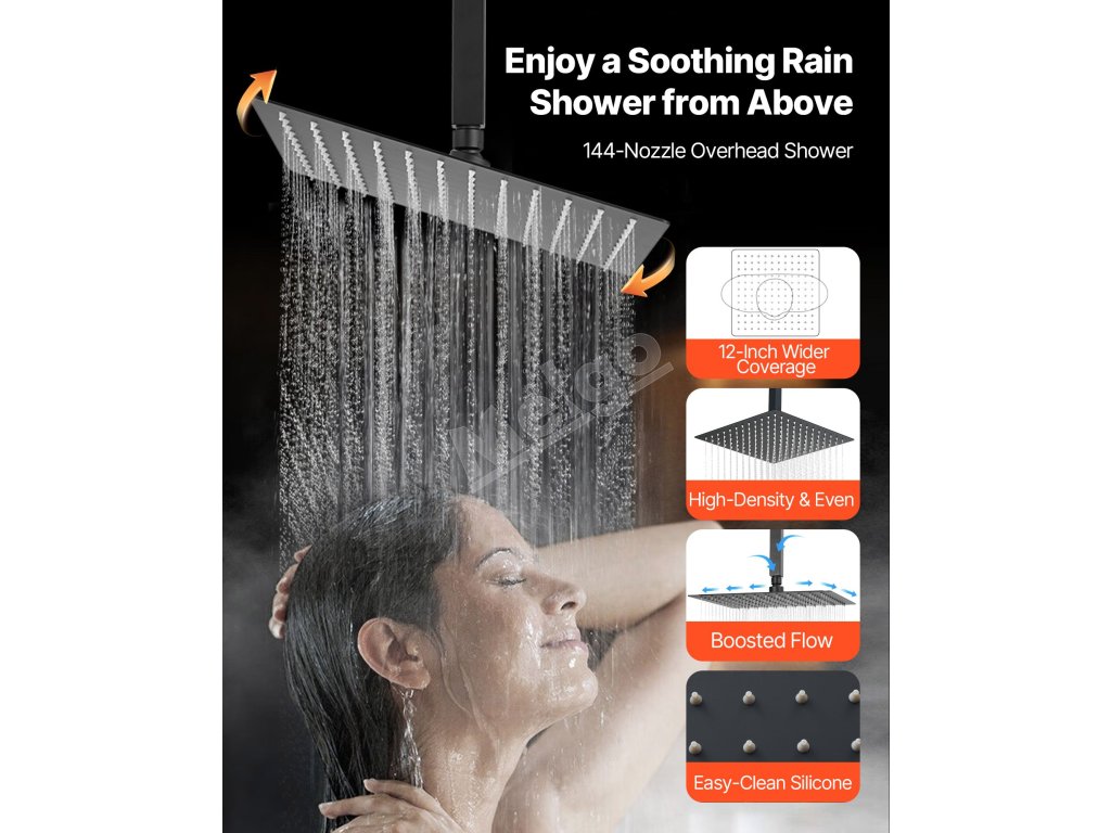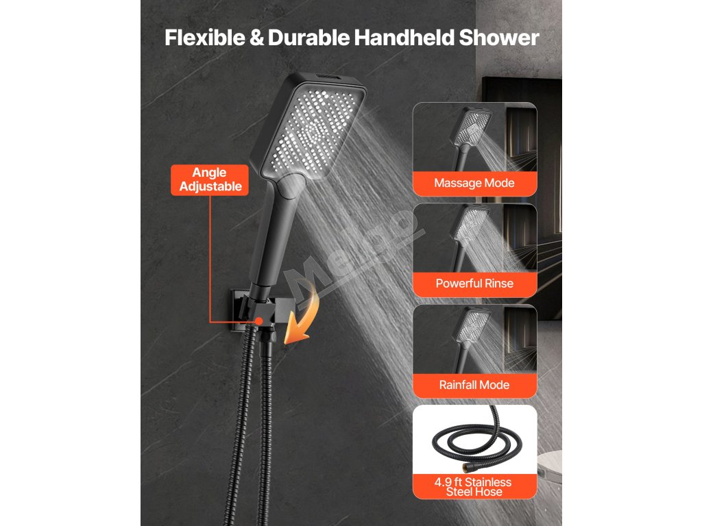 Naša súprava sprchových batérií ukrýva vodovodné potrubie za stenou, čím vytvára elegantný, špičkový vzhľad kúpeľne. Obsahuje 3 osviežujúce funkcie sprchy - ručnú, bočnú a hlavovú - na vylepšenie zážitku pre celé telo.