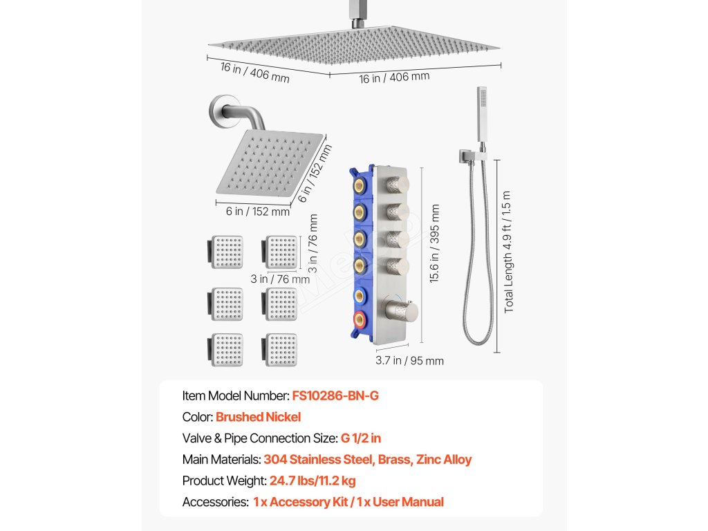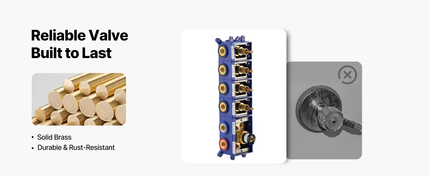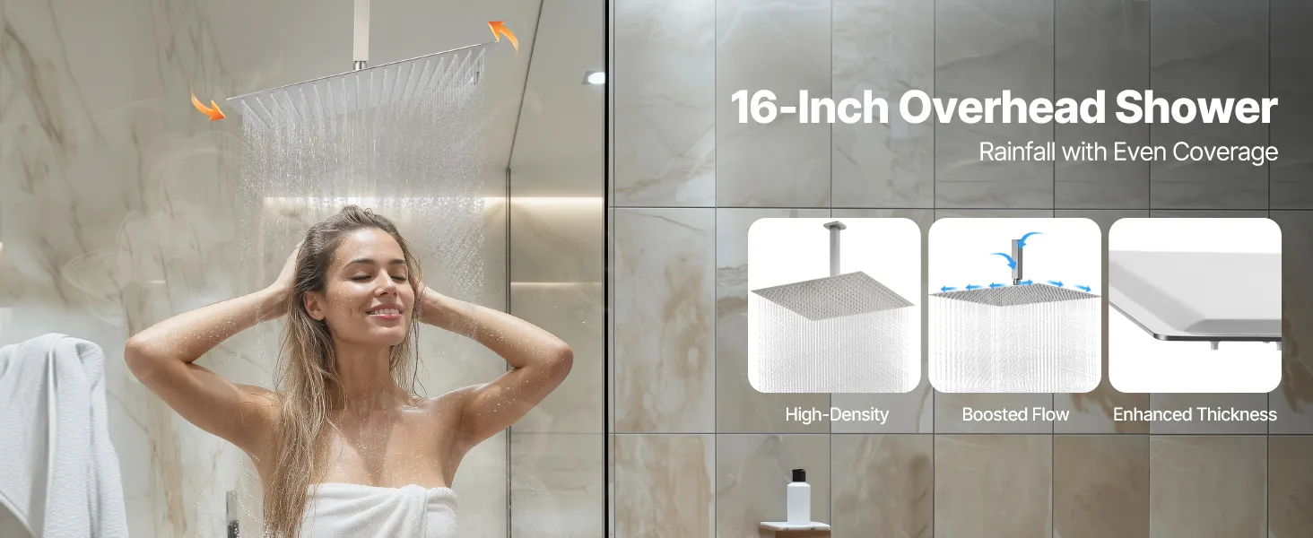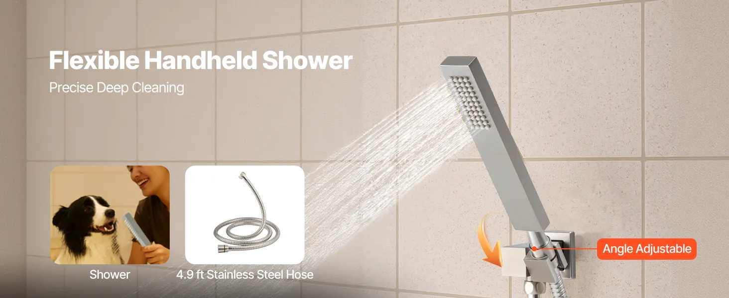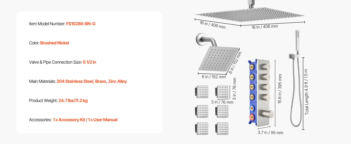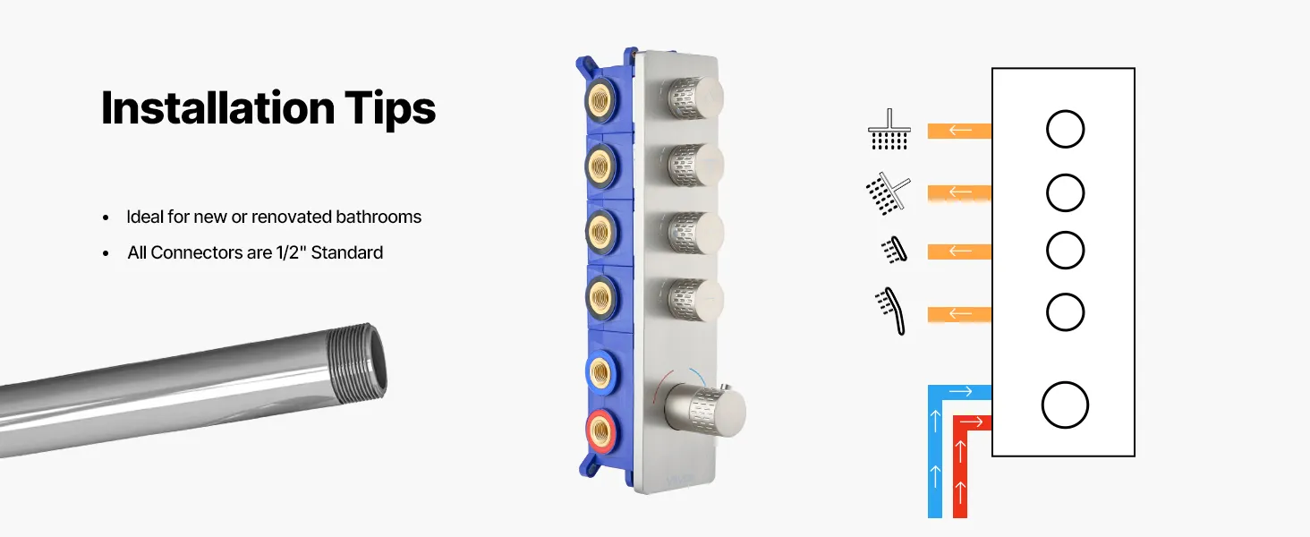 Naša súprava sprchových batérií ukrýva vodovodné potrubie za stenou, čím vytvára elegantný, špičkový vzhľad kúpeľne. Obsahuje 4 osviežujúce funkcie sprchy - 6 telových trysiek, hornú sprchu, bočnú sprchu a ručnú sprchu - na vylepšenie zážitku z celého tela.