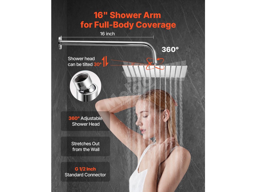 | Dĺžka sprchového ramena | 16 in/406 mm |