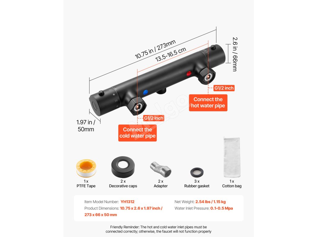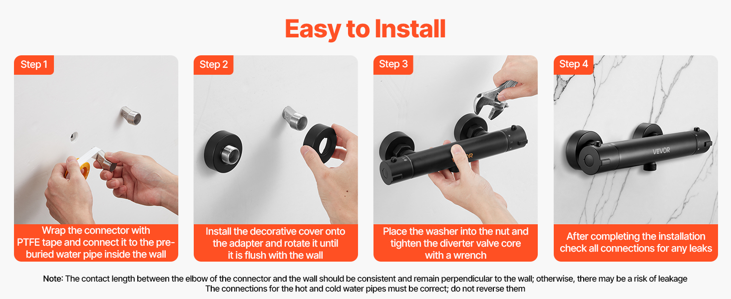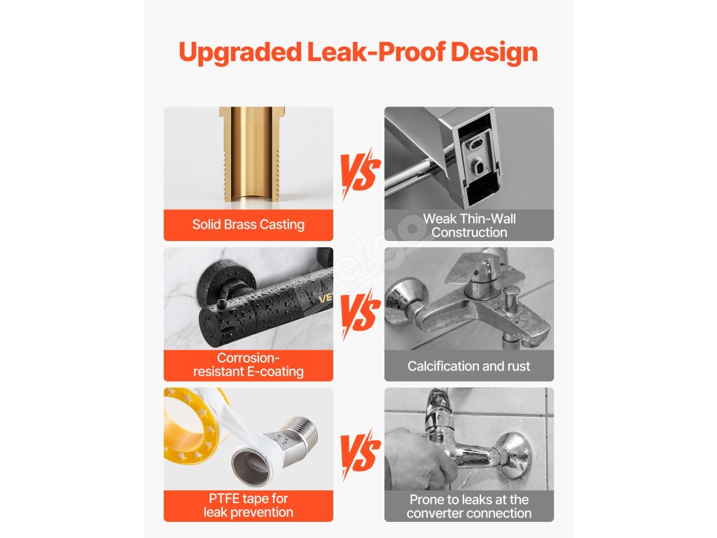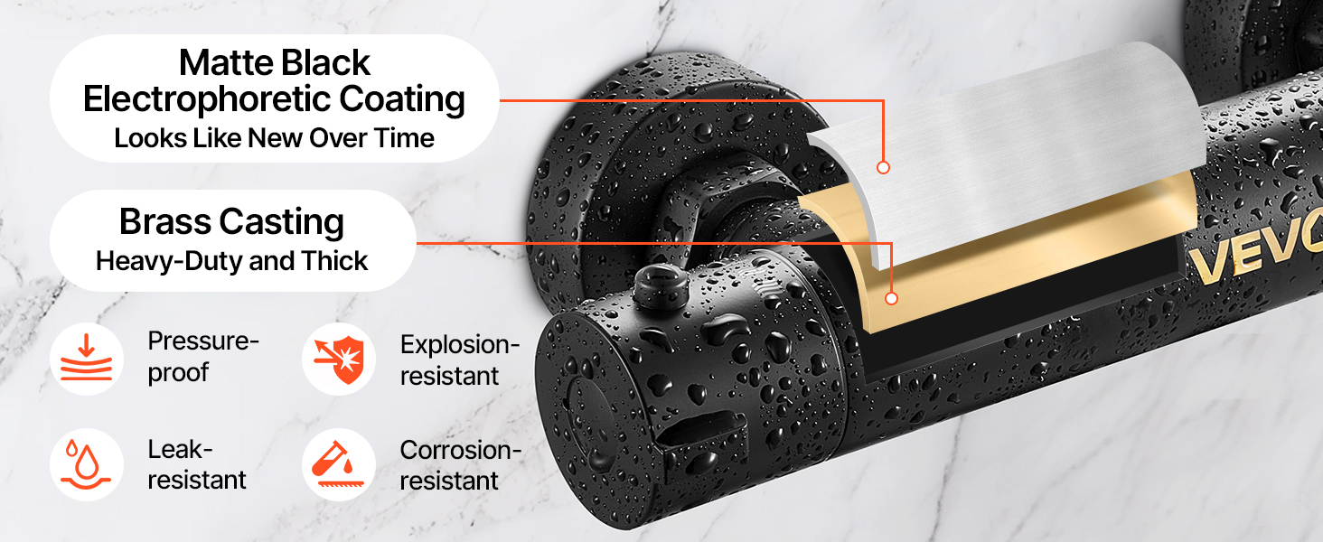 Termostatický zmiešavací ventil VEVOR je vybavený dvoma gombíkmi na ovládanie teploty aj prietoku. Či už uprednostňujete jemné oplachovanie alebo silný prúd, poskytuje stabilný výstup vody pri každom sprchovaní. Perfektne spĺňa potreby vašej rodiny s plynulým a spoľahlivým výkonom.