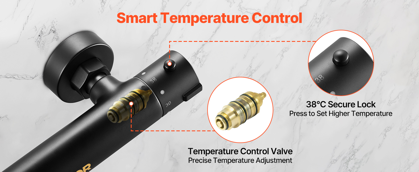 Nastavte si dokonalú teplotu vody pomocou termostatickej armatúry s trim ventilom sprchy v rozsahu 68-122℉ (20-50 ℃). Termostatický systém zabraňuje náhlym zmenám teploty, vďaka čomu je každá sprcha plynulejšia, bezpečnejšia a príjemnejšia bez neustáleho nastavovania.