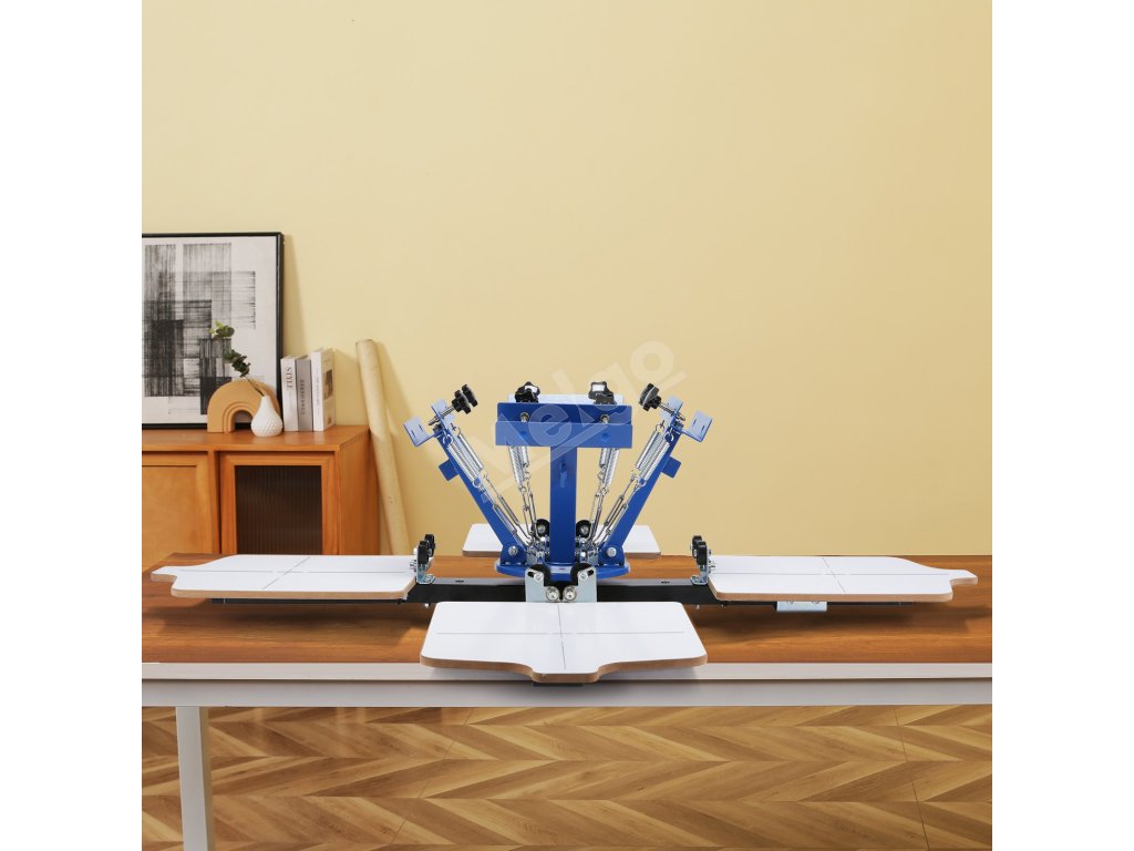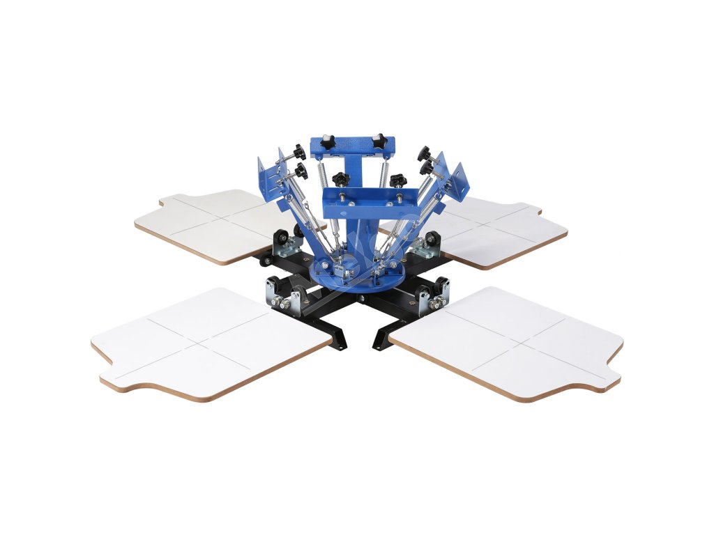 Sítotlačový stroj 4 farby 4 stanice 360° 21.2×17.7in / 54×45cm paleta