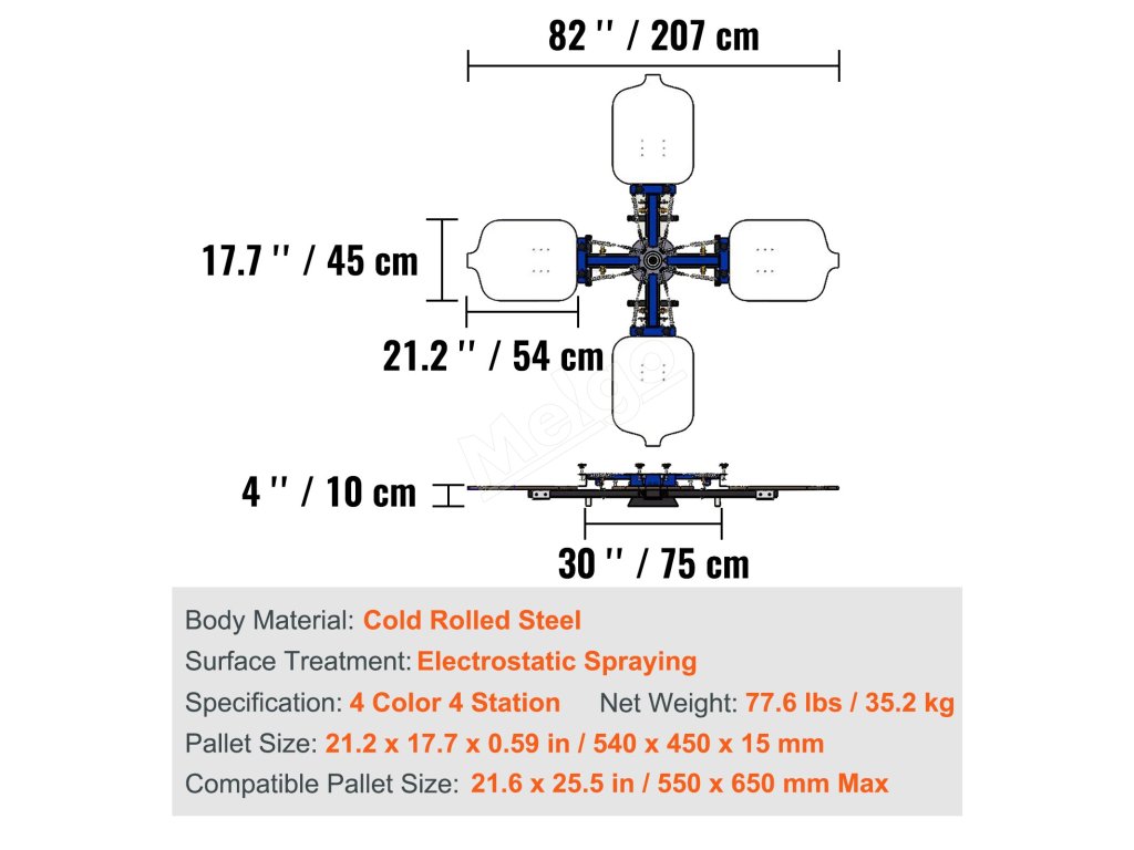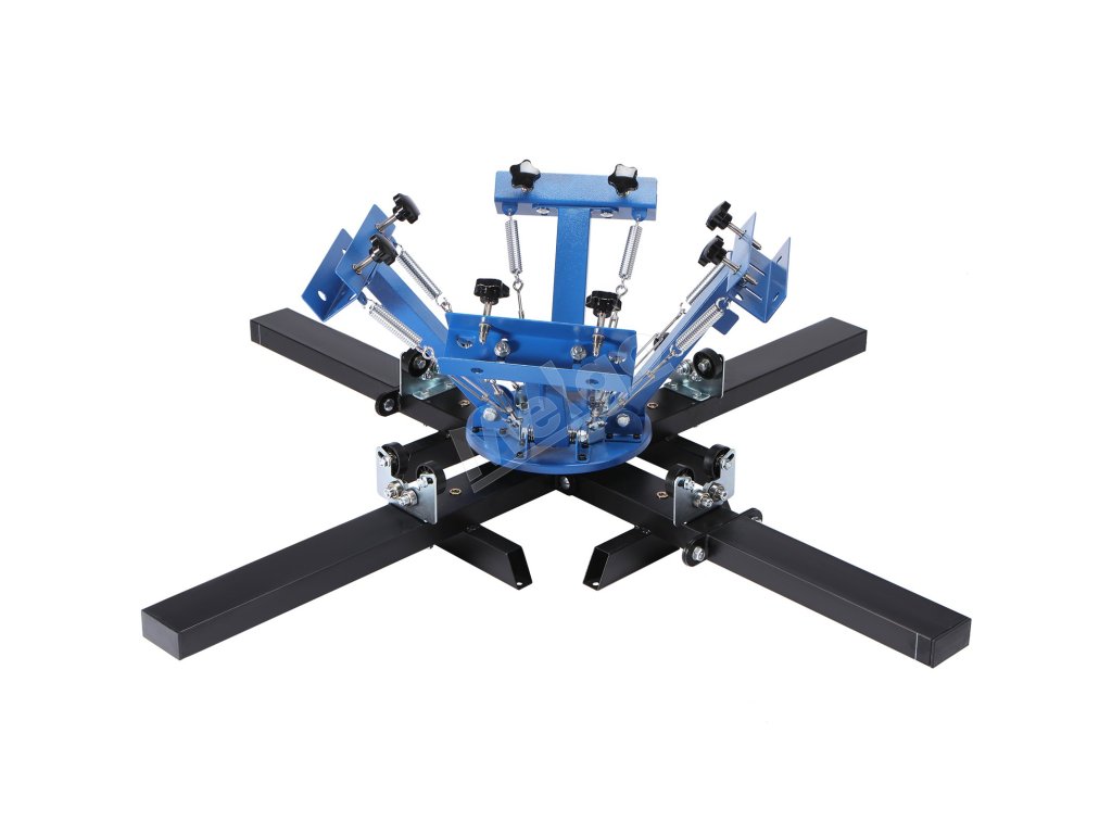Tento 4-farebný sieťotlačový stroj so 4 stanicami je vybavený nastaviteľnými funkciami. Vďaka týmto funkciám je sieťotlač jednoduchá a presná. Nastaviteľné pružiny umožňujú regulovať napätie. Tým sa zabezpečia konzistentné výtlačky. Okrem toho má stroj nastaviteľný držiak na uchytenie plátna. Aj to prispieva k presnosti vašich výtlačkov. Okrem toho je cenným doplnkom našich sieťotlačí. Naša dvojvrstvová polohovacia paleta pomáha pri presnom zarovnaní. Preto môžeme ľahko tlačiť viac farieb. Získate tak kontrolu nad vytlačenými materiálmi. Toto nastavenie sme navrhli tak, aby ste mali kontrolu nad svojimi výtlačkami.