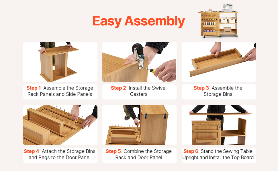 Poskytujeme jasný a podrobný návod na montáž, takže môžete ľahko postupovať podľa krokov a zostaviť si skrinku na šijacie stroje bez problémov.