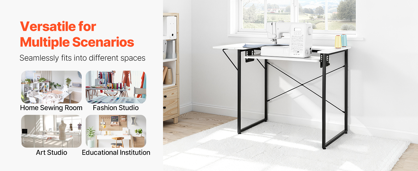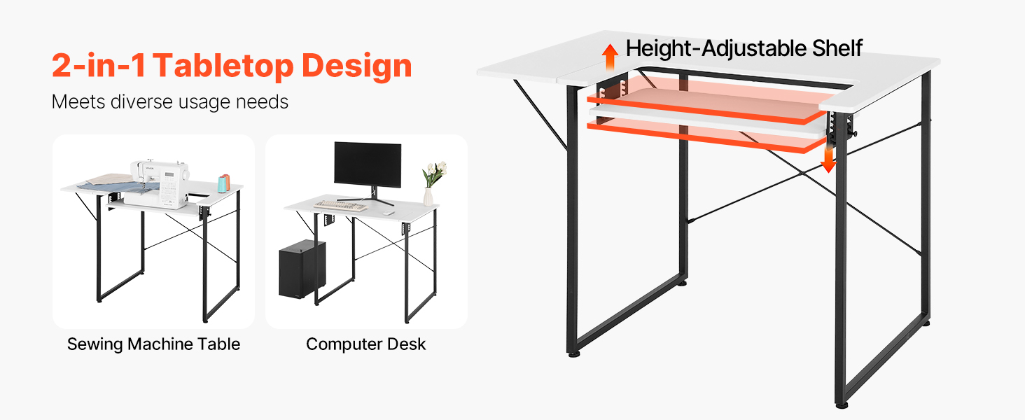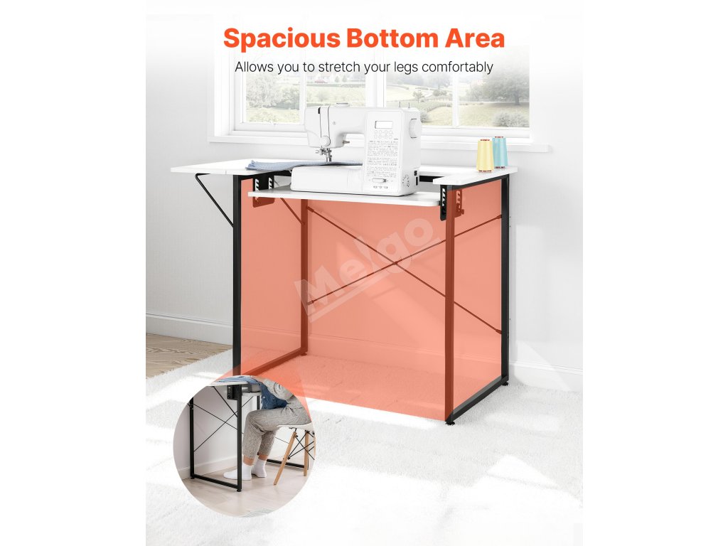 Tento skladací šijací stôl funguje nielen ako stôl na šijacie stroje, ale premení sa aj na počítačový stôl, čím splní vaše rozmanité potreby. Jeho flexibilná polička vám umožní rýchlo nastaviť výšku podľa rôznych zariadení a scenárov používania, čím sa zabezpečí viacnásobné využitie na zefektívnenie vášho pracovného priestoru.