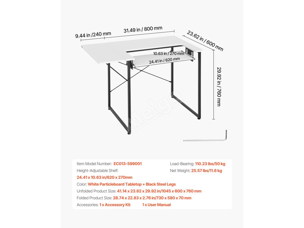 | Farba | Biela doska z MDF + čierne oceľové nohy |