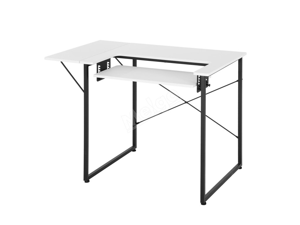 Stôl na šitie s nastaviteľnou policou, sklápacou bočnicou, biely
