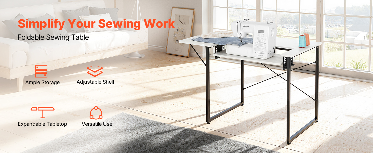 Tento skladací šijací stôl poskytuje dostatok úložného priestoru, ktorý umožňuje jednoduché usporiadanie šijacích nástrojov a materiálov. Jeho flexibilnú policu možno nastaviť podľa výšky rôznych šijacích strojov, zatiaľ čo rozkladacia doska poskytuje viac pracovného priestoru, čím sa zefektívňuje vaša šijacia práca.