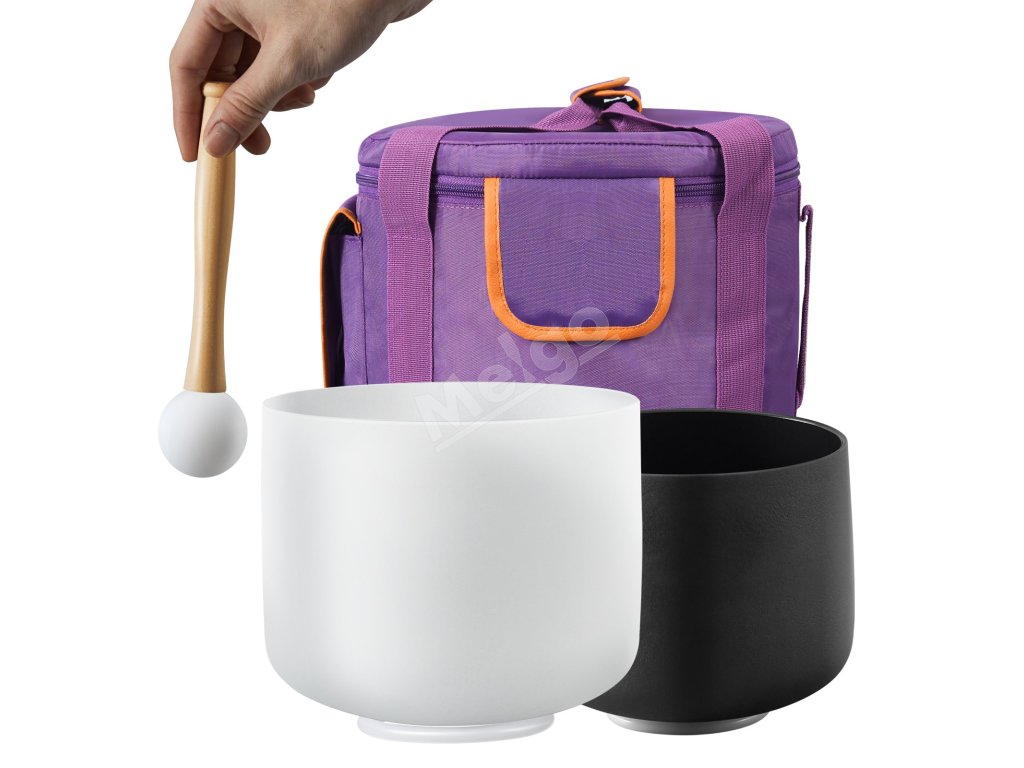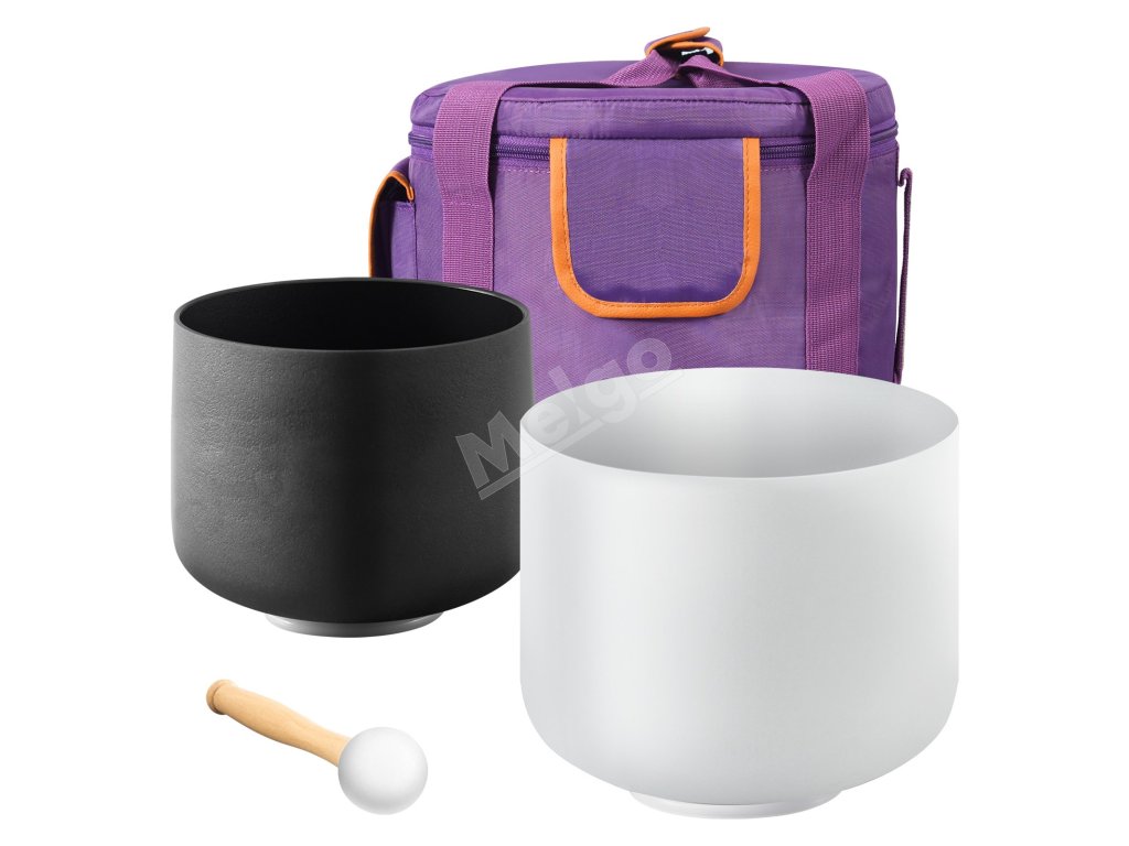 Krištáľové spievajúce misy 8" a 10", tóny a f, s taškou a paličkou