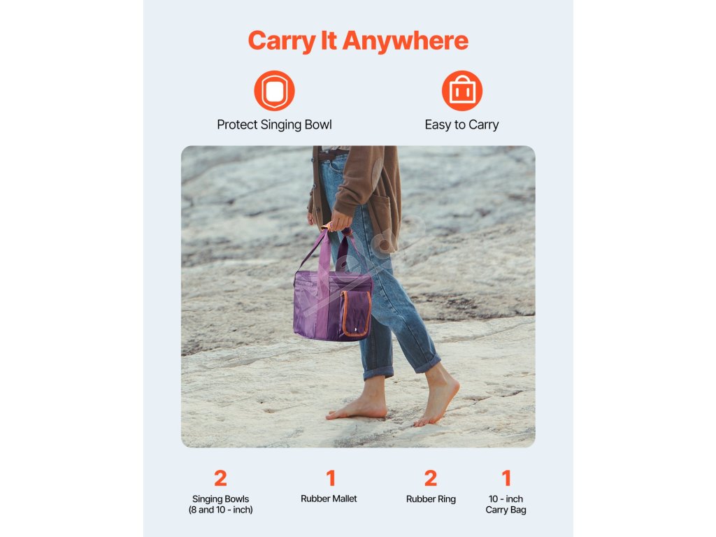 Táto súprava spievajúcich mís, vybavená 2 x spievajúcimi miskami (8 a 10-palcovými), 1 x 10-palcovou taškou na prenášanie, 1 x ochrannou vložkou (8-palcovou), 1 x ochrannou vložkou (10-palcovou), 1 x gumovou paličkou, 2 x gumovými krúžkami, 2 x nálepkami s notami (A a F), zaručuje uvoľňujúci zážitok z liečby zvukom.