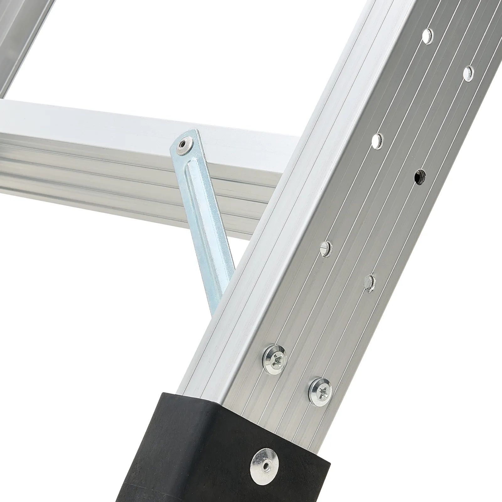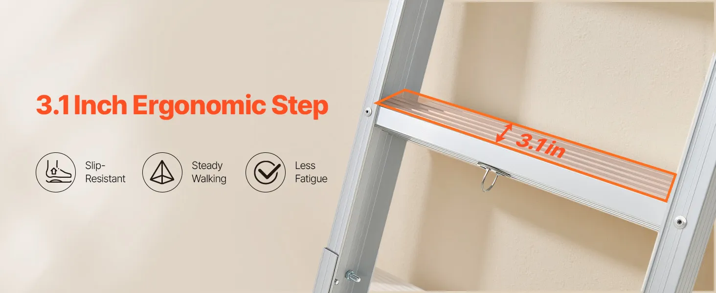Tento rebrík vyrobený z vysokopevnostnej hliníkovej zliatiny a odolného hardvéru unesie až 375 lbs. Stupne široké 3,1 palca zabezpečujú stabilnú oporu a priložená vyťahovacia tyč umožňuje bezproblémové skladanie a rozkladanie.