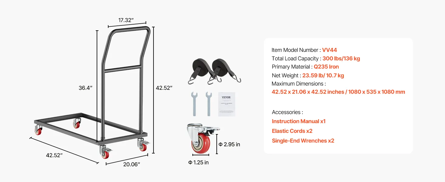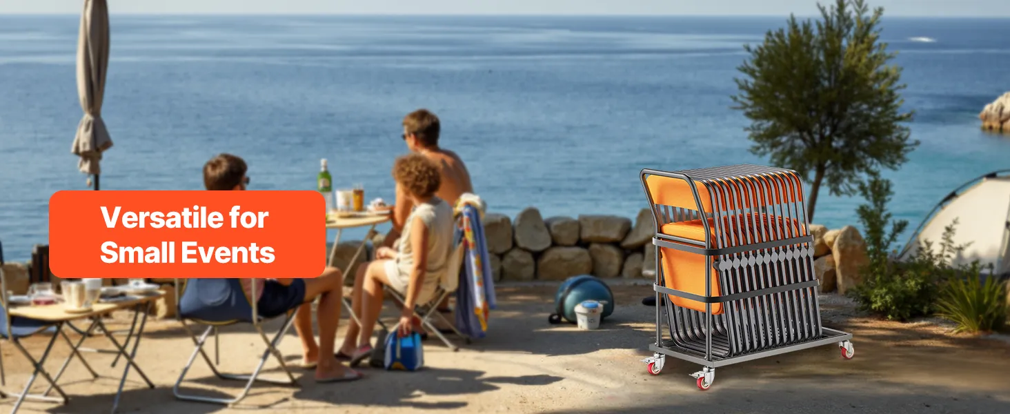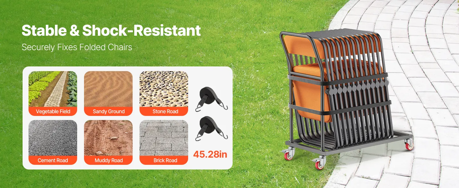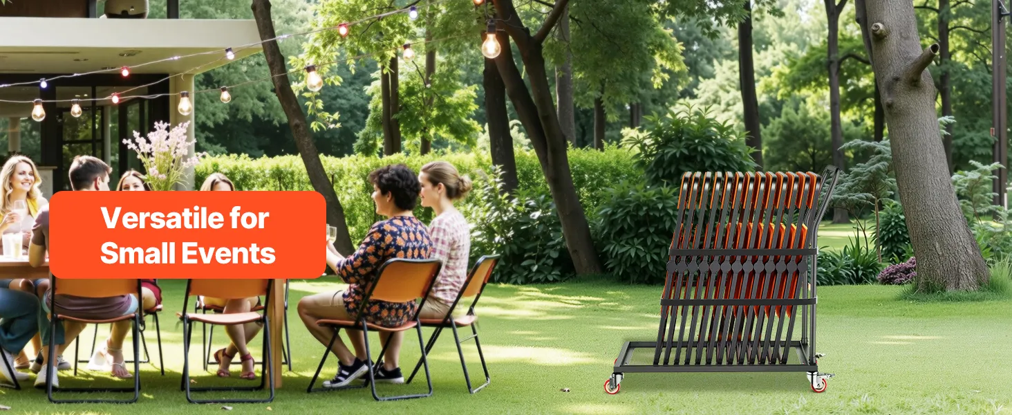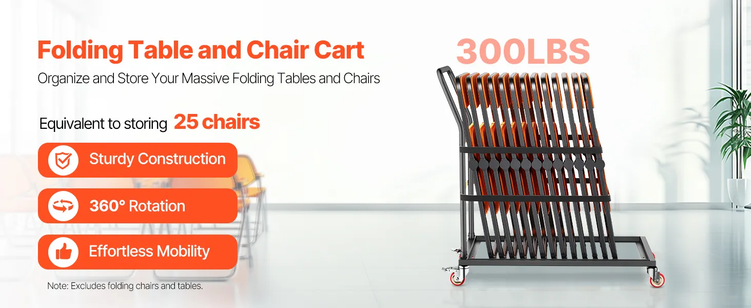 Tento vozík na jedálenské stoličky bez problémov kombinuje pohodlnú prepravu s priestorovo úsporným dizajnom, vďaka čomu je ideálny na rôzne podujatia, konferencie a iné. Je ideálnym riešením pre rodiny a školy, ktoré chcú efektívne usporiadať a uskladniť jedálenské stoličky.