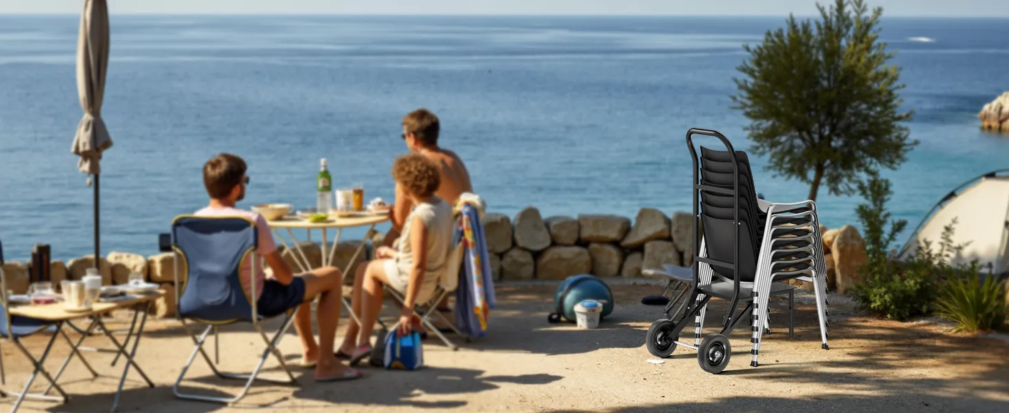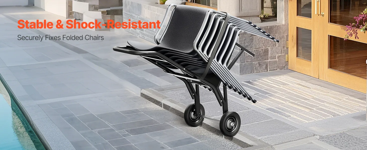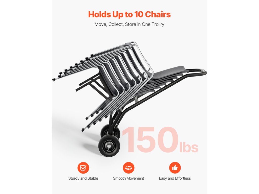 Vozík na skladacie stoličky nosnosť 150 LBS, na 10 ks, gumové kolieska