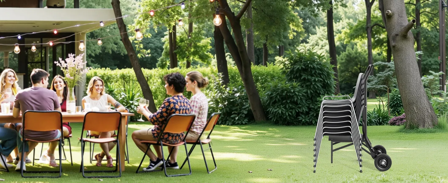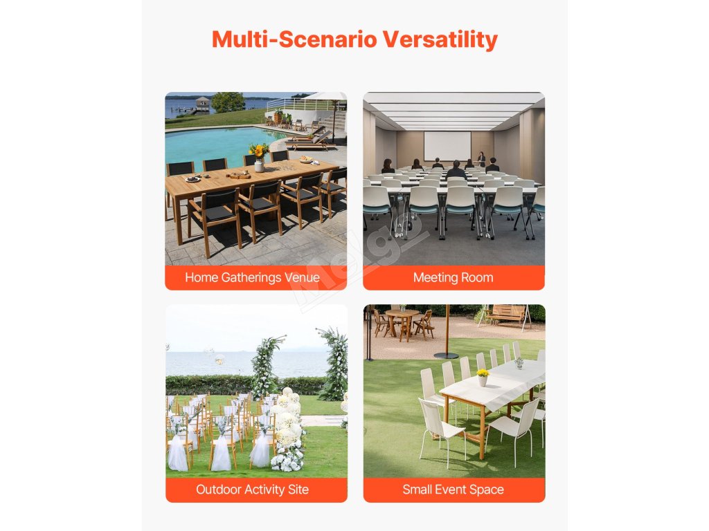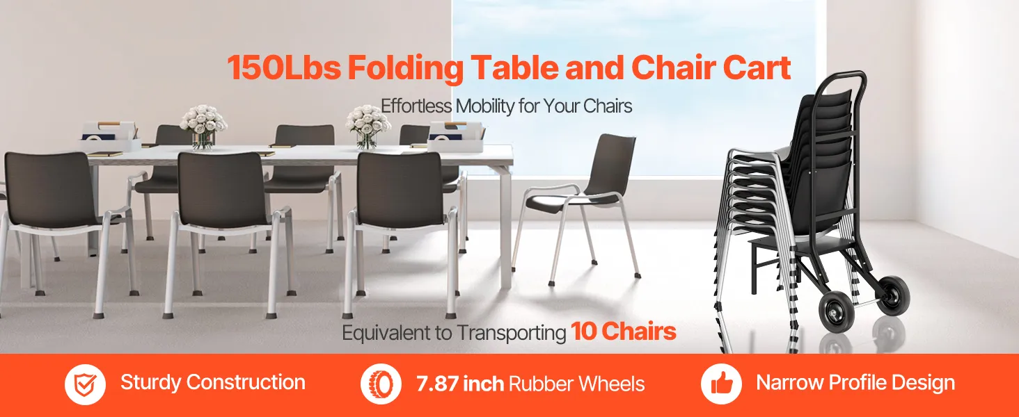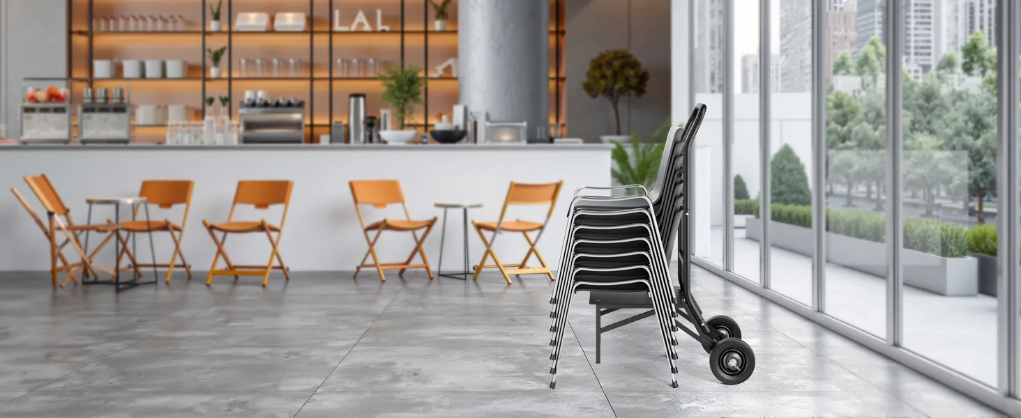 Tento vozík na jedálenské stoličky bez problémov kombinuje pohodlnú prepravu s priestorovo úsporným dizajnom, vďaka čomu je ideálny na rôzne podujatia, konferencie a iné. Je ideálnym riešením pre rodiny a školy, ktoré chcú efektívne usporiadať a uskladniť jedálenské stoličky.