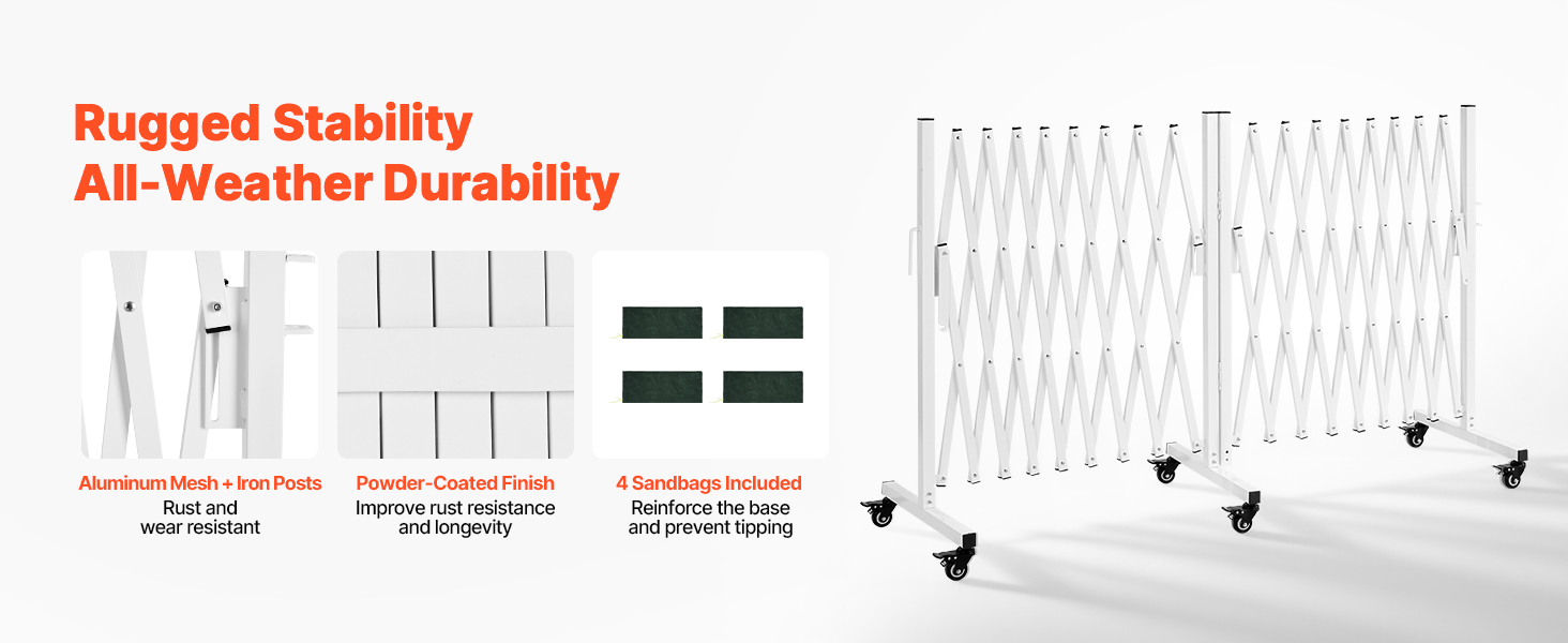 Naše dvojité rozťahovacie zábrany sa dajú ľahko predĺžiť alebo skrátiť, aby vyhovovali rôznym potrebám pokrytia, čo vám umožňuje rýchlo zablokovať nebezpečné alebo obmedzené oblasti a pomôcť chrániť ľudí v okolí. Rozťahovateľná dĺžka: 18 ft (5,48 m), skrátená dĺžka: 24,4 in (620 mm)