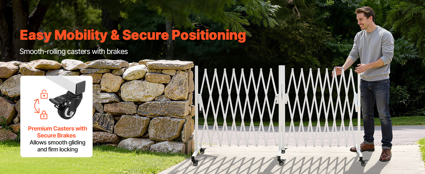 Táto bezpečnostná bariéra je vybavená 6 uzamykateľnými kolieskami, ktoré sa pohybujú plynulo a ticho, takže sa dá ľahko presúvať a umiestňovať na rôzne povrchy podľa potreby.
