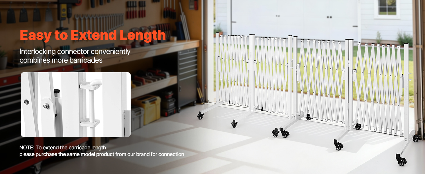Táto rozťahovateľná skladacie bezpečnostná bariéra je navrhnutá s prepojovacím konektorom, ktorý umožňuje pohodlné pripojenie ďalších bariér a rozšírenie pokrytia.