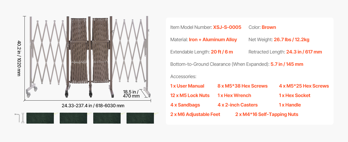 Naše dvojité rozťahovacie zábrany sa dajú ľahko predĺžiť alebo skrátiť, aby vyhovovali rôznym potrebám pokrytia, čo vám umožňuje rýchlo zablokovať nebezpečné alebo obmedzené oblasti a pomôcť chrániť ľudí v okolí. Rozťahovateľná dĺžka: 20 stôp (6 m), skrátená dĺžka: 24,3 palca (617 mm)