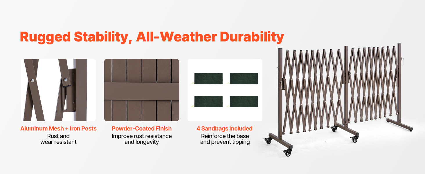 Vyrobené z hliníkovej siete a železných stĺpikov, s povrchovou úpravou práškovým lakovaním, ktoré pomáha odolávať korózii pri dlhodobom používaní. Štyri priložené vrecia s pieskom posilňujú základňu, zlepšujú stabilitu a pomáhajú zabrániť prevráteniu.