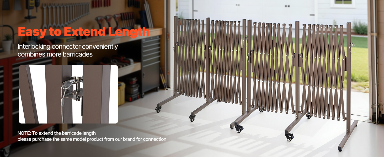 Táto rozťahovateľná skladacie bezpečnostná bariéra je navrhnutá s prepojovacím konektorom, ktorý umožňuje pohodlné pripojenie ďalších bariér a rozšírenie pokrytia.