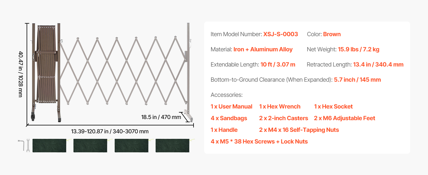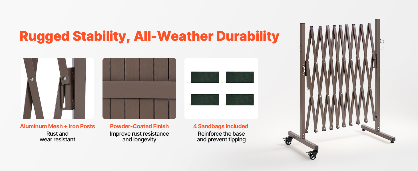 Naša rozťahovateľná bariéra sa ľahko rozťahuje alebo zasúva, aby vyhovovala rôznym potrebám pokrytia, čo vám umožňuje rýchlo zablokovať nebezpečné alebo obmedzené oblasti a pomôcť chrániť ľudí v okolí. Rozťahovateľná dĺžka: 3,07 m, zasunutá dĺžka: 340,4 mm
