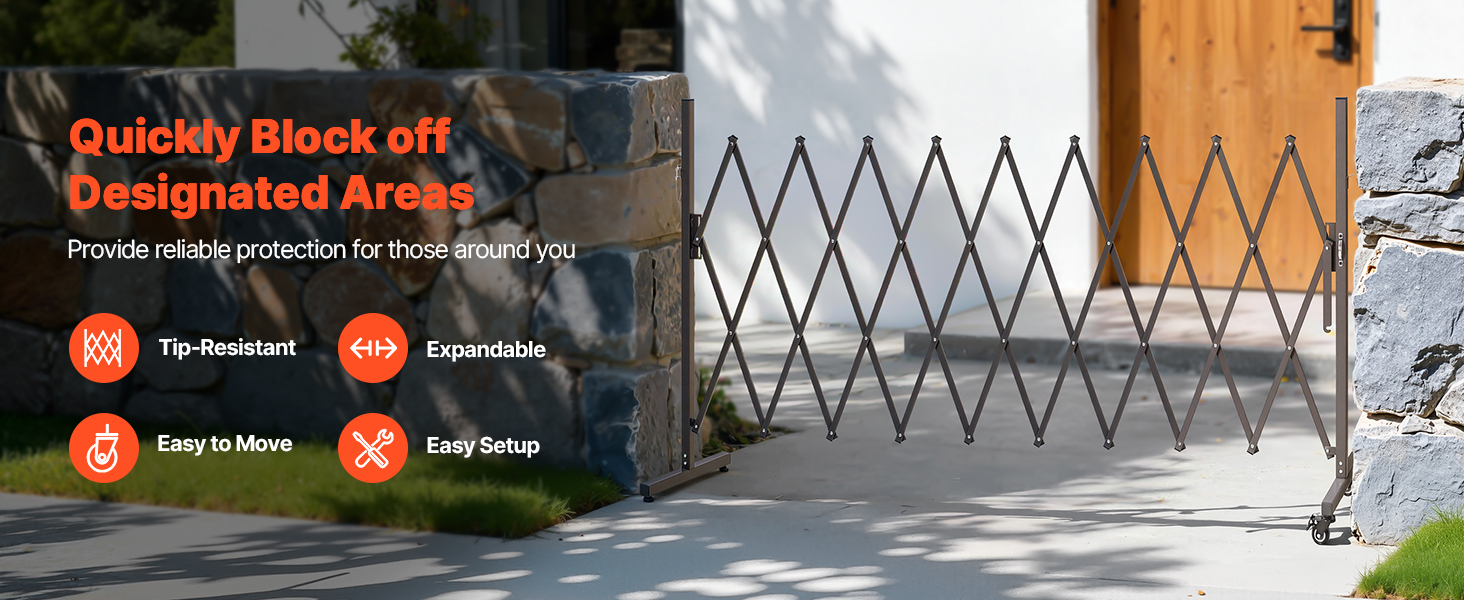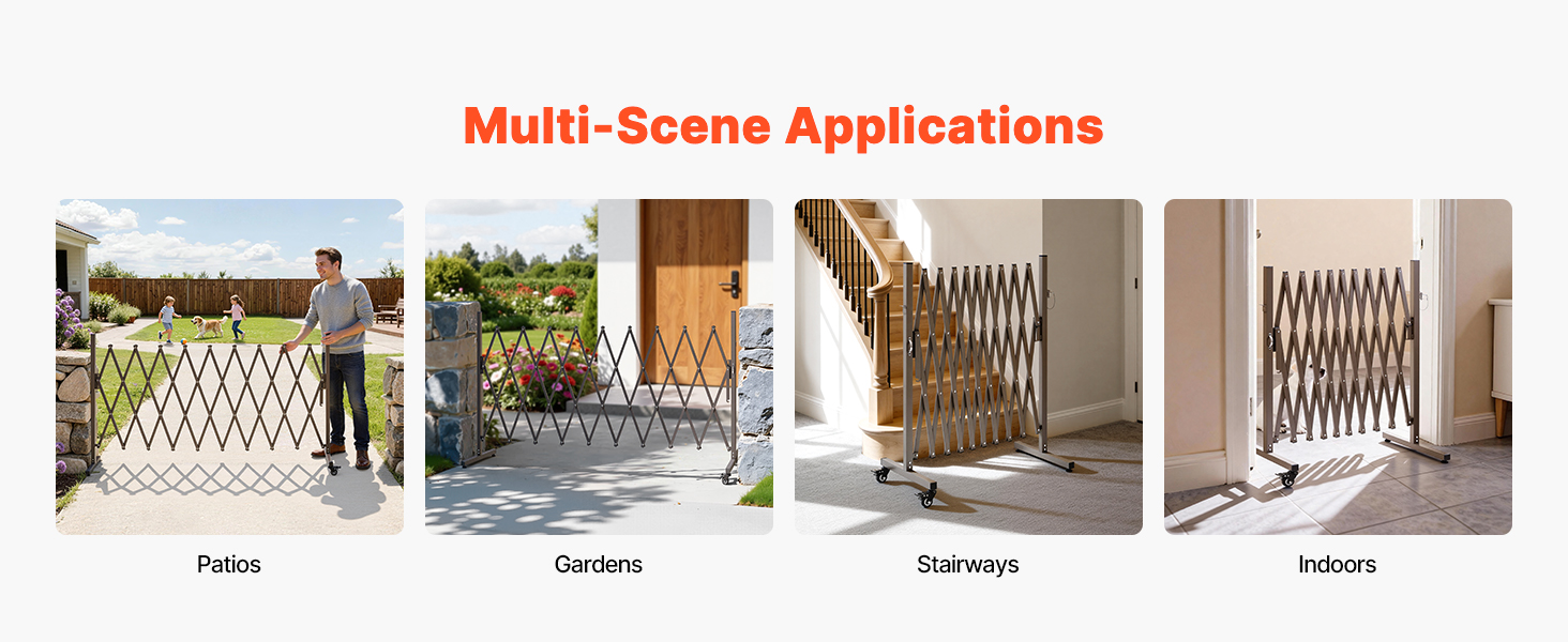 Od terás a záhrad po schodiská, táto skladateľná mobilná bariéra sa ľahko prispôsobí rôznym prostrediam, kde sú potrebné dočasné bariéry.