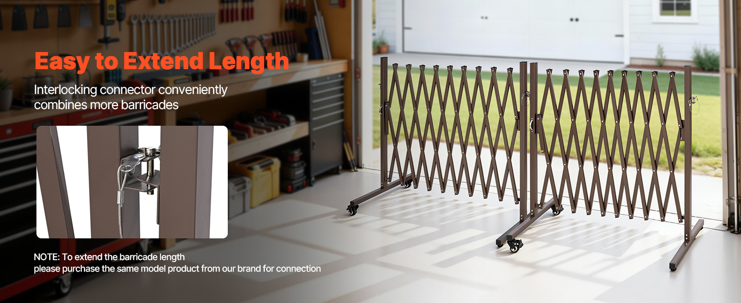 Táto rozťahovateľná bezpečnostná bariéra je navrhnutá s prepojovacím konektorom, ktorý umožňuje pohodlné spojenie dvoch alebo viacerých bariér a rozšírenie pokrytia.
