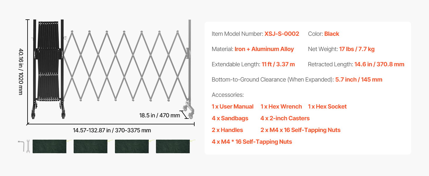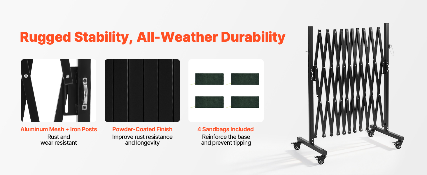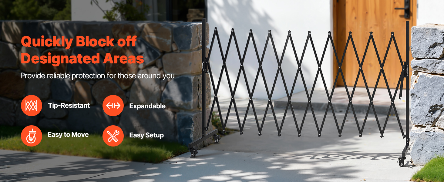 Naša rozťahovateľná bariéra sa ľahko rozťahuje alebo zasúva, aby vyhovovala rôznym potrebám pokrytia, čo vám umožňuje rýchlo zablokovať nebezpečné alebo obmedzené oblasti a pomôcť chrániť ľudí v okolí. Rozťahovateľná dĺžka: 11 stôp (3,37 m), zasunutá dĺžka: 14,6 palca (370,8 mm).