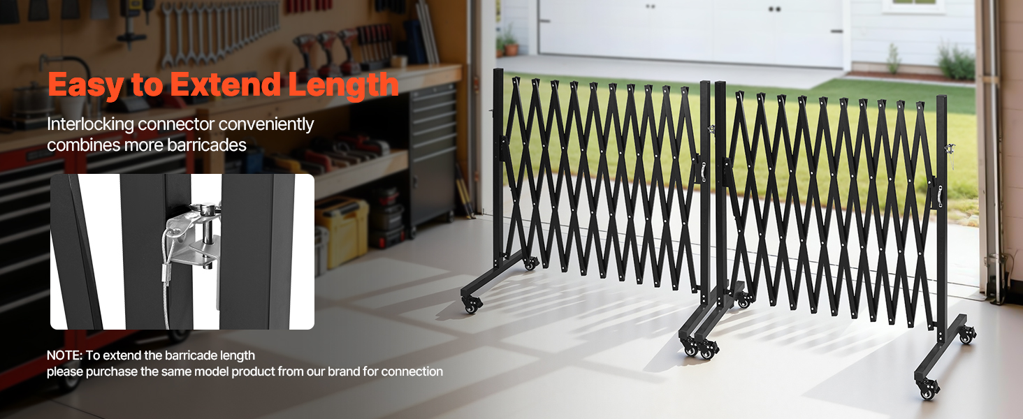 Táto rozťahovateľná bezpečnostná bariéra je navrhnutá so zámkovým spojom, ktorý umožňuje pohodlné spojenie dvoch alebo viacerých bariér a rozšírenie pokrytia.