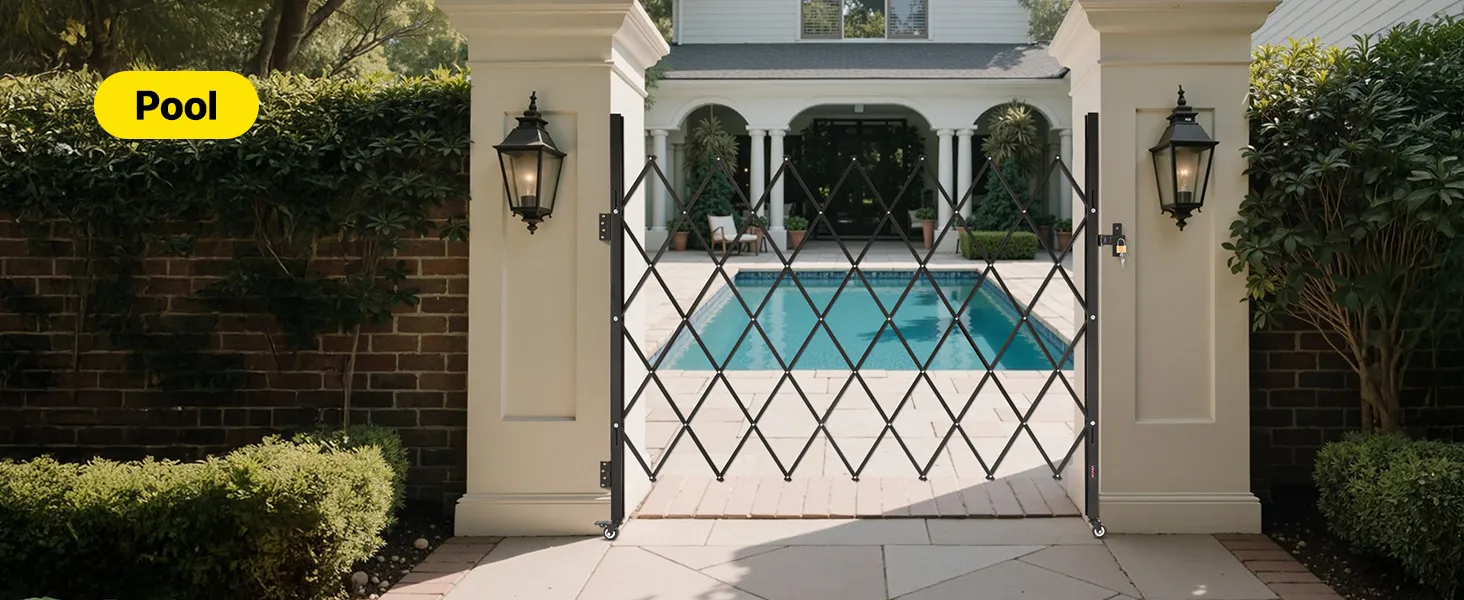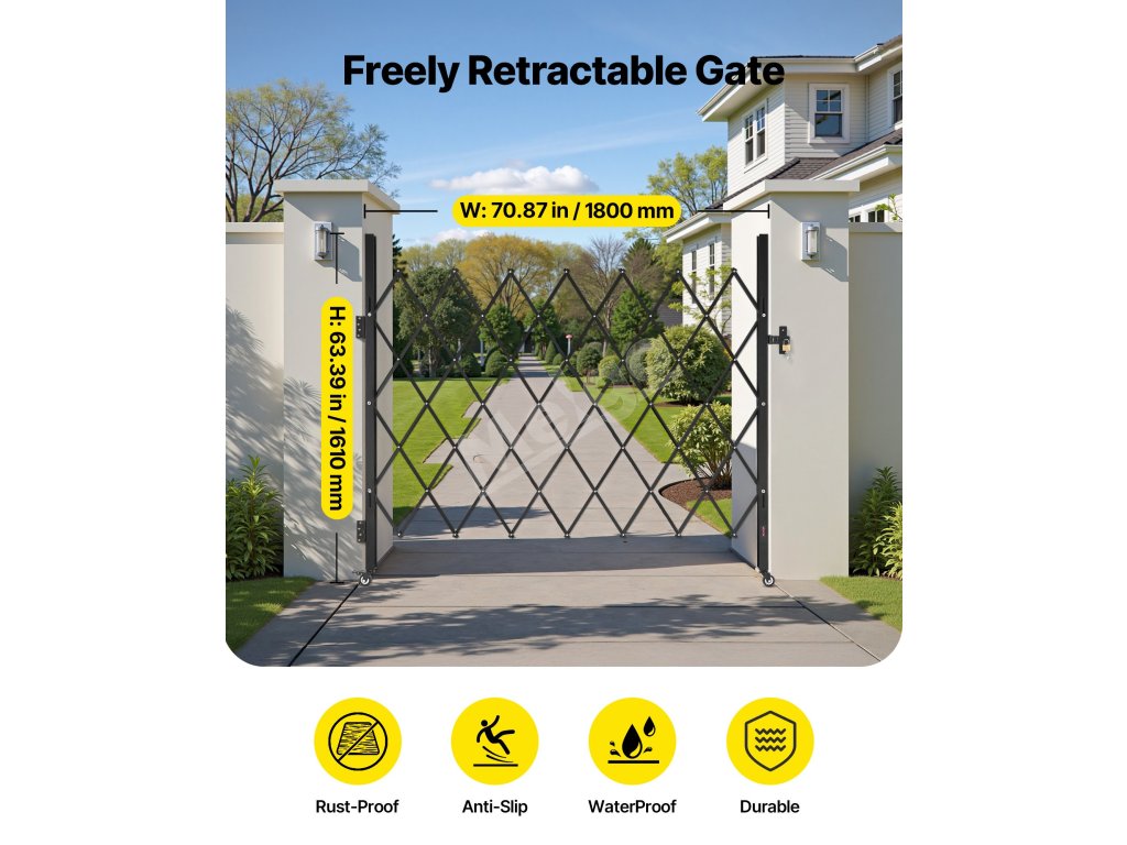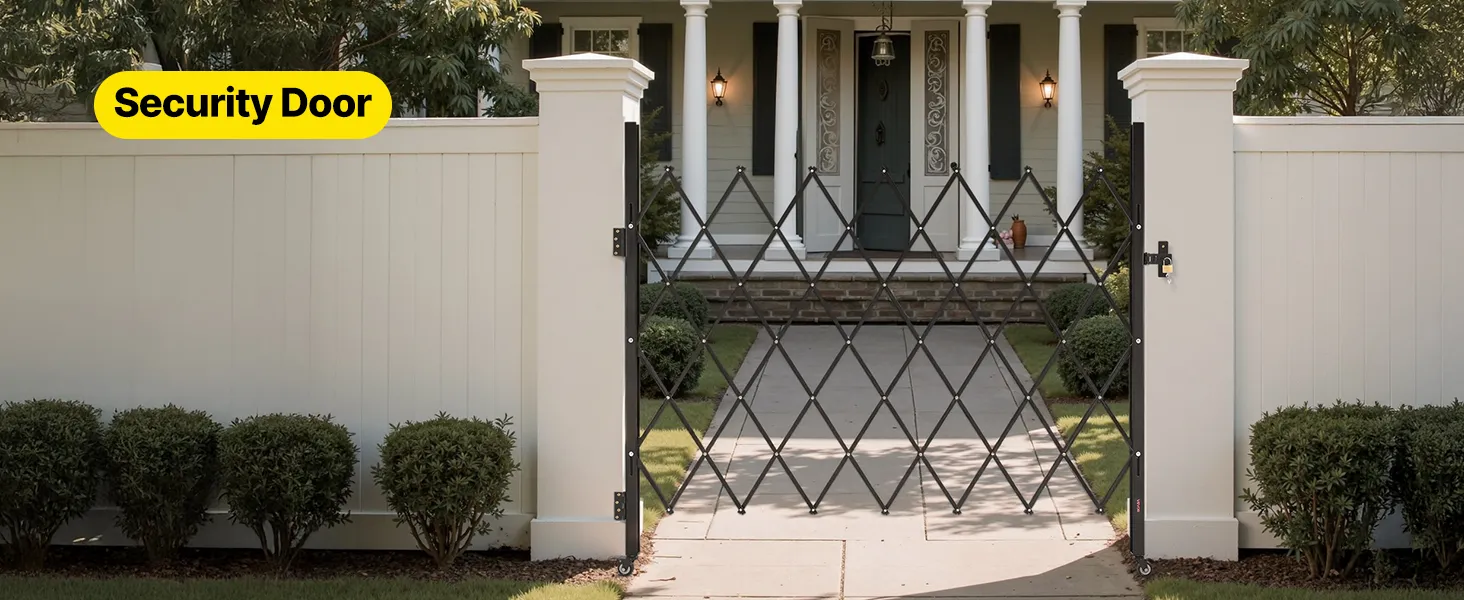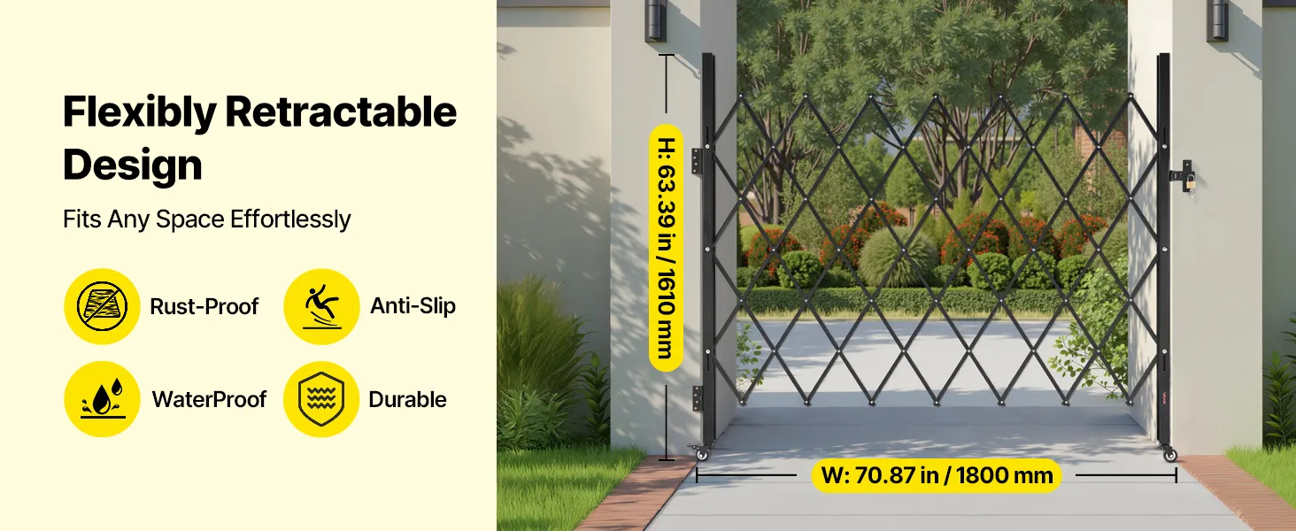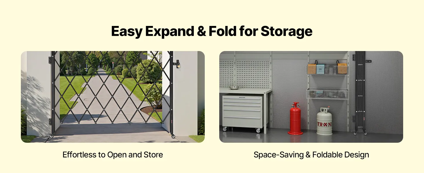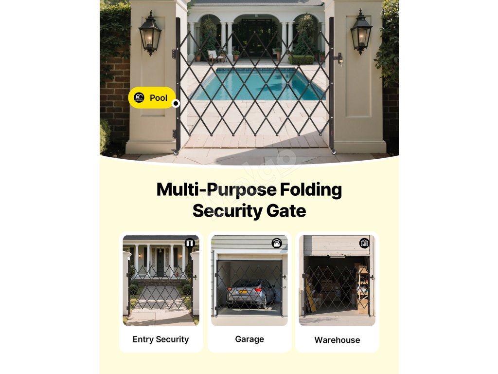Naša skladacia bezpečnostná brána je vyrobená z odolného oceľového kanála s čiernym práškovým náterom na dlhšie používanie. Je vybavená zámkom na zvýšenie bezpečnosti a dodáva sa s inštalačnou súpravou, takže je ideálna na rušné chodby alebo vchody v komerčných priestoroch.