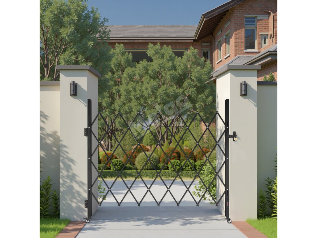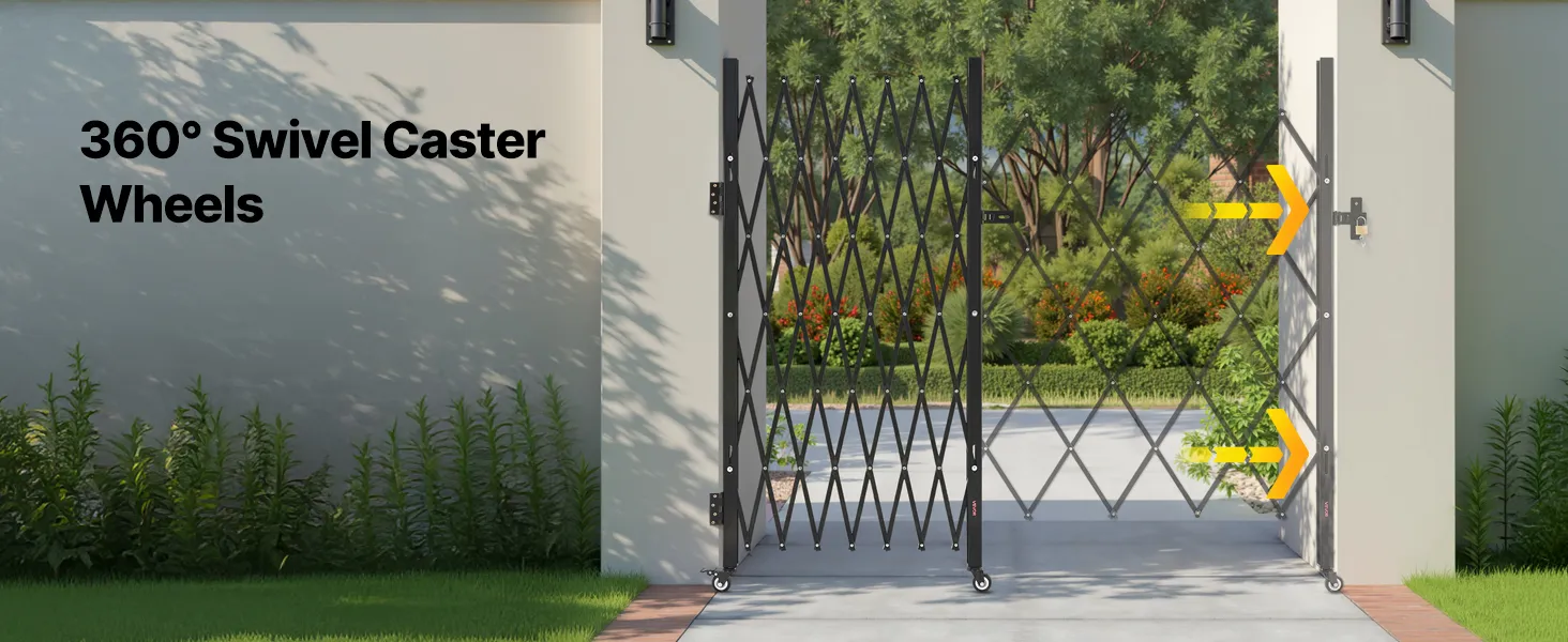 Skladacia uzamykateľná oceľová brána s kolieskami 360°, 180×161 cm