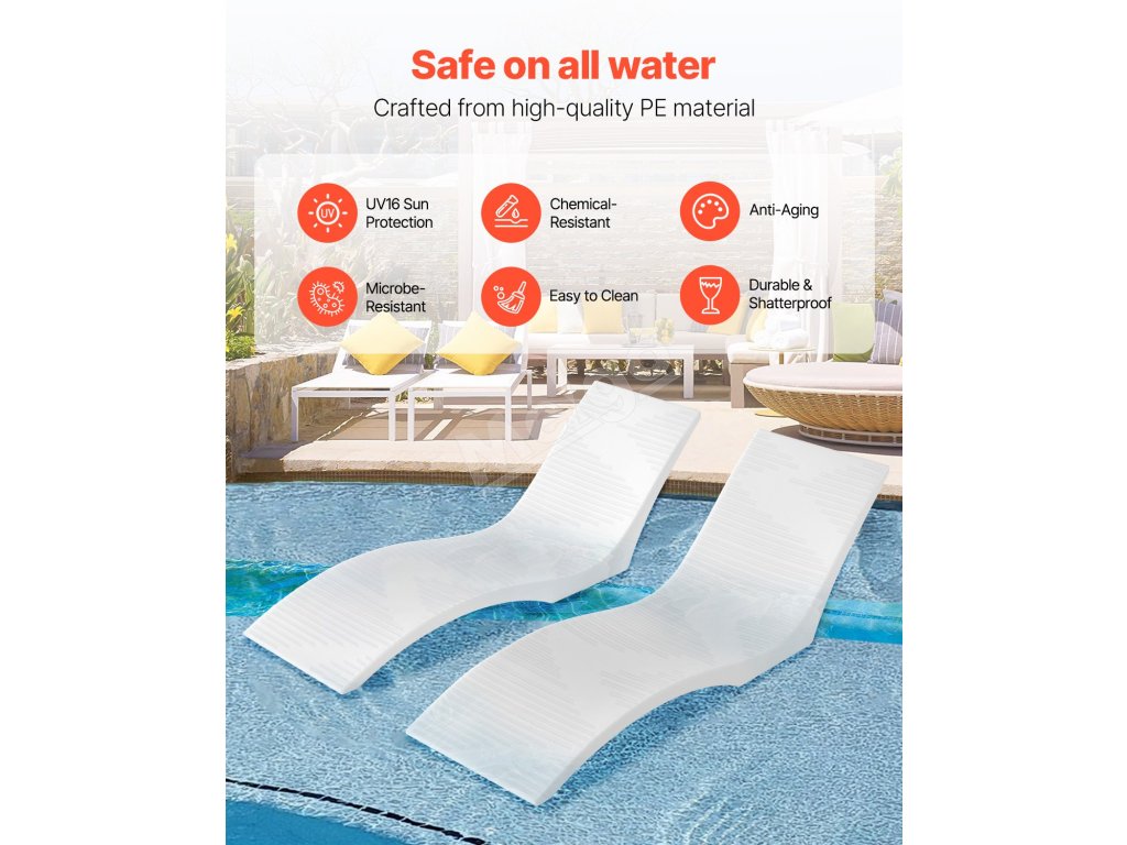 Toto bazénové lehátko vyrobené z odolného PE materiálu je navrhnuté tak, aby odolalo slnečnému žiareniu bez zožltnutia alebo starnutia. Je ideálne do bazénov so slanou vodou a chlórovanou vodou a zvyšky opaľovacieho krému sa dajú ľahko zotrieť.