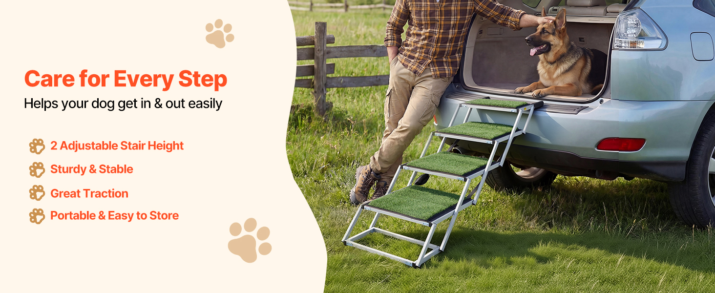 Tieto schodíky do auta pre psov majú široké a stabilné schodíky, ktoré zaisťujú bezpečný krok. Pomáhajú domácim miláčikom s obmedzenou pohyblivosťou ľahšie nastupovať a vystupovať z auta.
