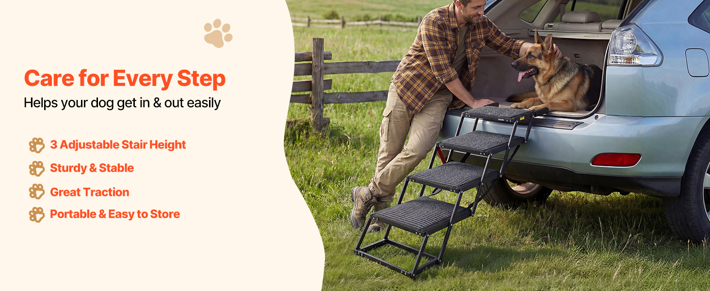 Tieto schodíky do auta pre psov majú široké a stabilné schodíky, ktoré zaisťujú bezpečný krok. Pomáhajú domácim miláčikom s obmedzenou pohyblivosťou ľahšie nastupovať a vystupovať z auta.