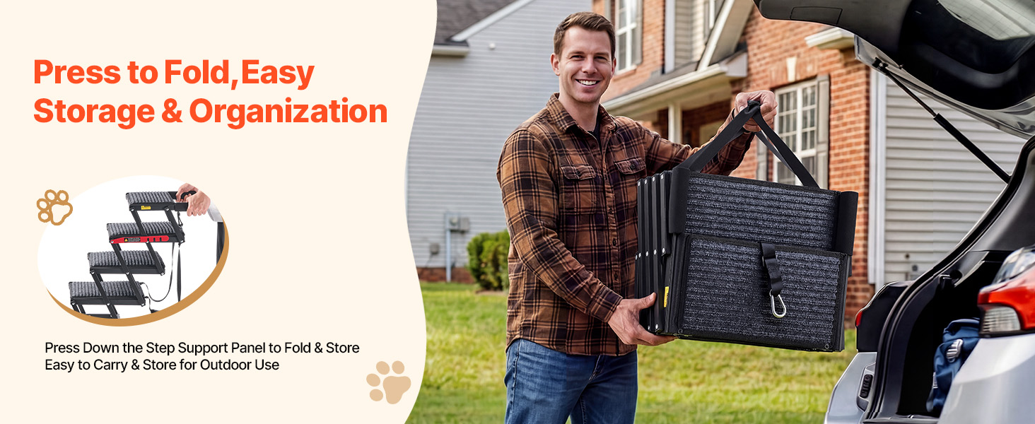 Naše skladacie schodíky pre veľké psy sú ľahké a prenosné, vhodné na každodenné použitie. Skladací dizajn umožňuje kompaktné uloženie vo vozidle alebo doma.