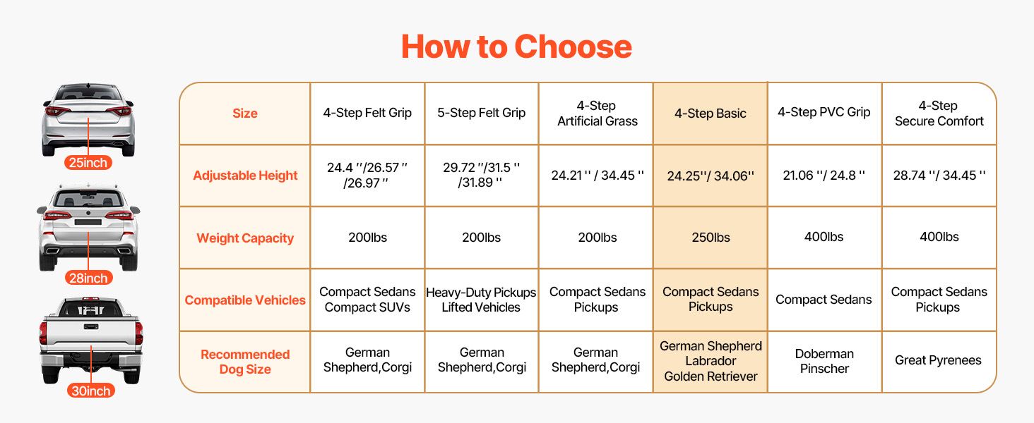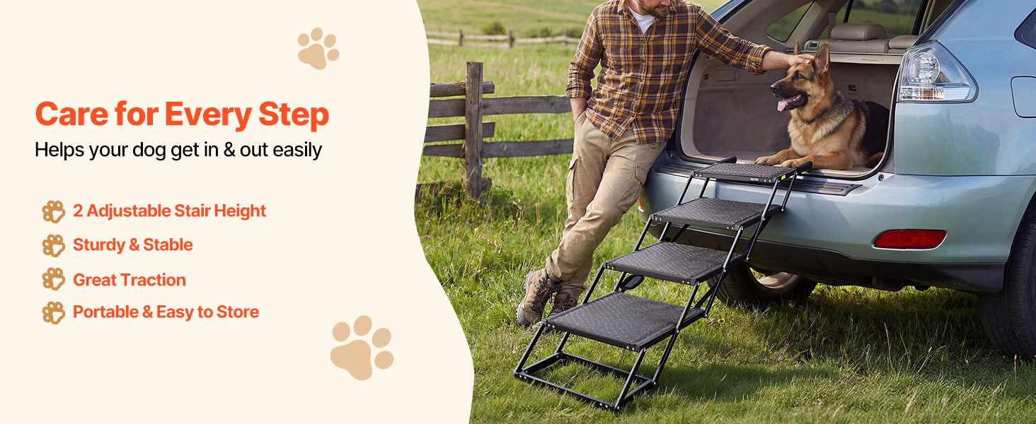 Tieto schodíky do auta pre psov majú široké a stabilné schodíky, ktoré zaisťujú bezpečný krok. Pomáhajú domácim miláčikom s obmedzenou pohyblivosťou ľahšie nastupovať a vystupovať z auta.
