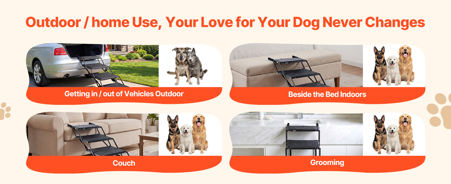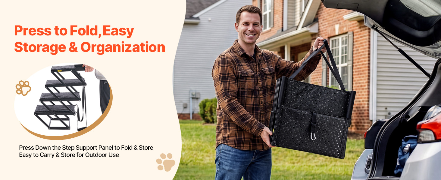 Naše skladacie schody pre veľké psy sú ľahké a prenosné, vhodné na každodenné použitie. Skladací dizajn umožňuje kompaktné uloženie vo vozidle alebo doma.