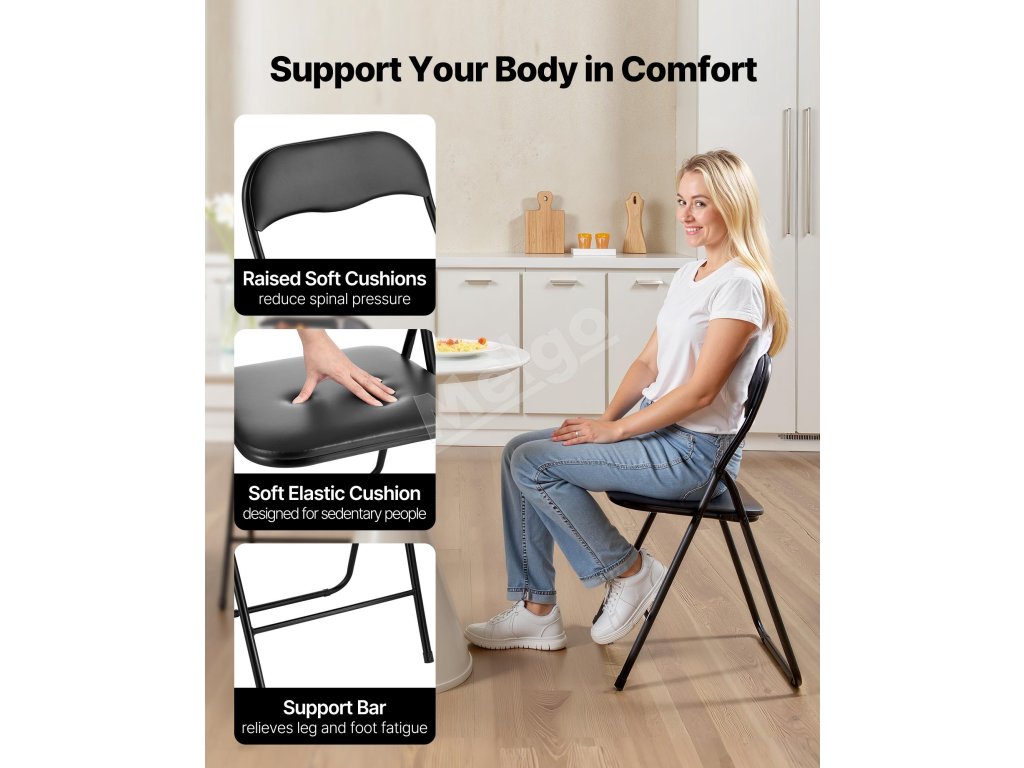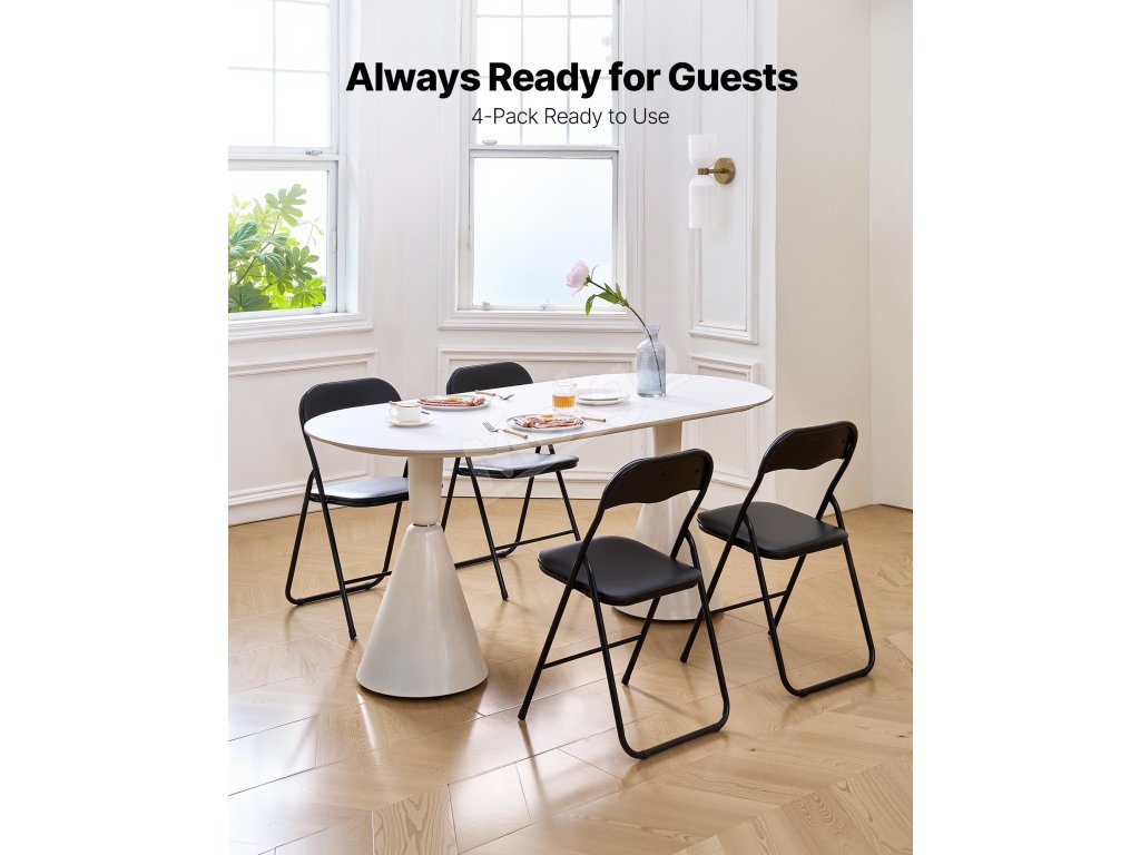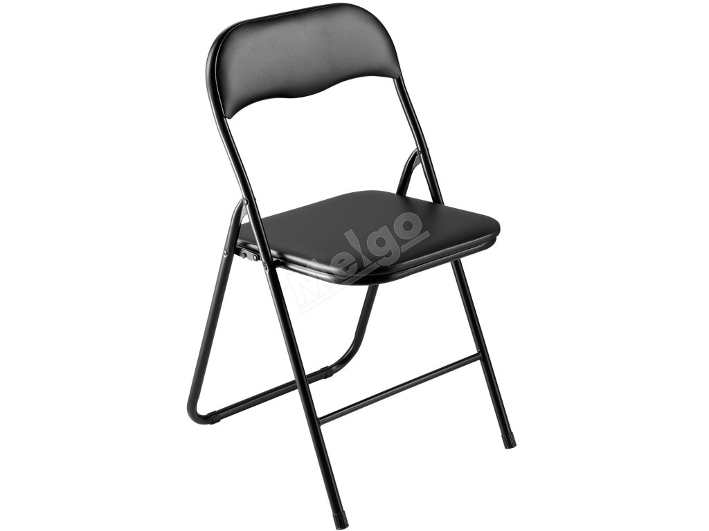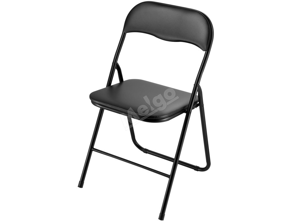 Sada 4 ks skladacích stoličiek, pevný kovový rám, čalúnené, čierne